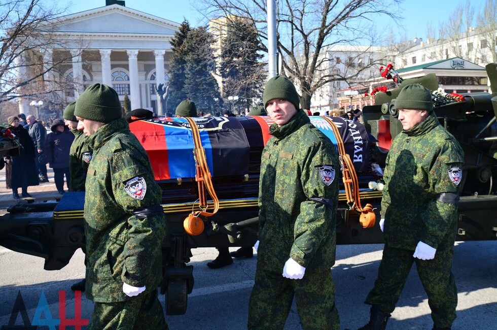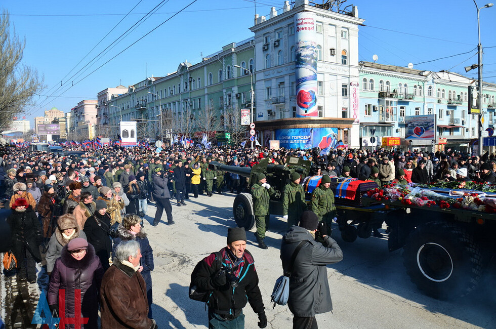 Донецк, 10 фев – корр. ДАН. Траурное шествие в память о погибшем Герое ДНР, полковнике Вооруженных сил Республики Михаиле Толстых завершилось в Донецке, передает корр. ДАН с места событий.