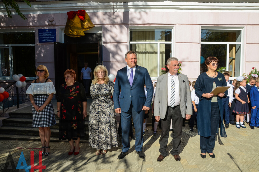 Также Кулемзин вручил каждому первокласснику подарочный набор, выпущенный специально к 1 сентября: фотоальбом с достопримечательностями Донецка и краткой историей города, а также тетрадь-раскраску. Затем для самых юных лицеистов прозвучал первый школьный звонок.