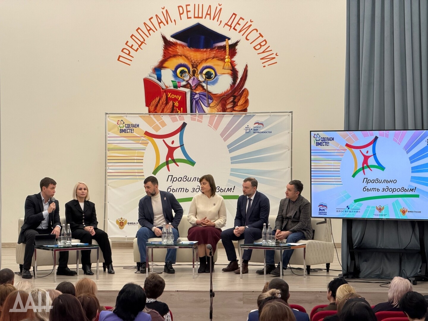 Донецк, 24 фев — корр. ДАН. Всероссийская акция «Правильно быть здоровым» федерального проекта «Мир возможностей» партии «Единая Россия» началась с многопрофильного лицея №5 им. Н. П. Бойко в Донецке. Церемония включила круглый стол и открытый урок о здоровом питании, а также кулинарный мастер-класс.
