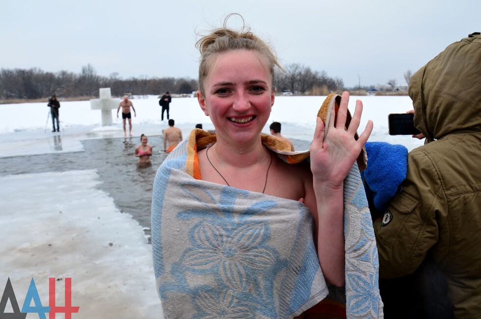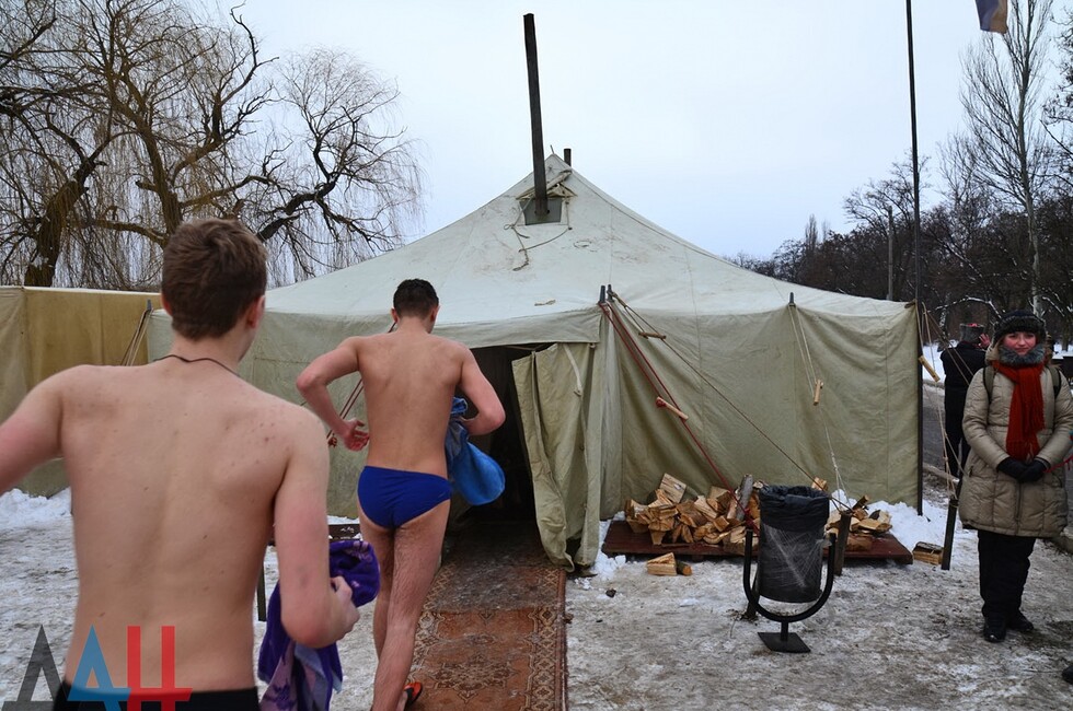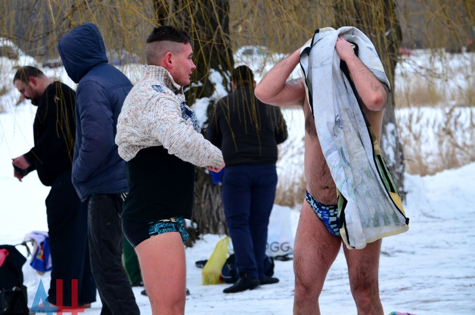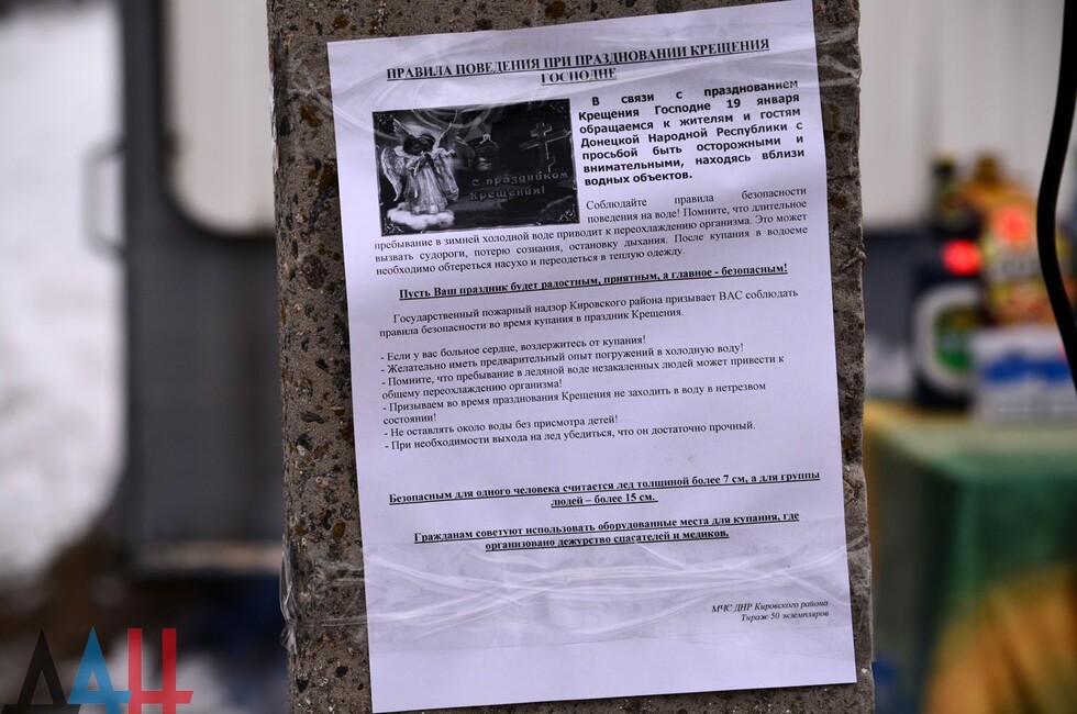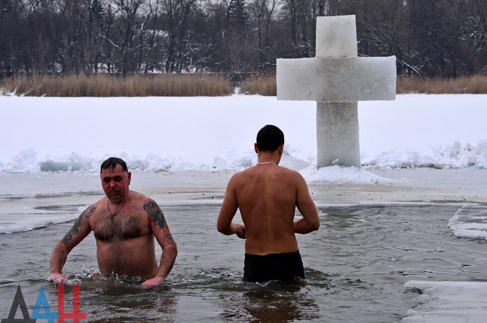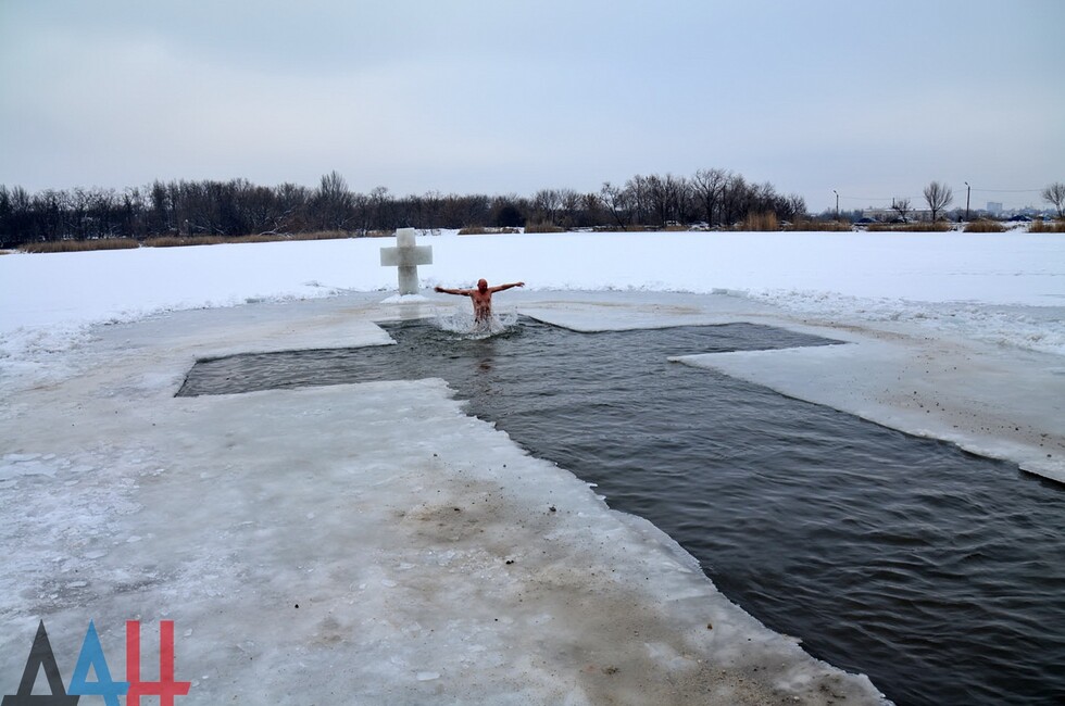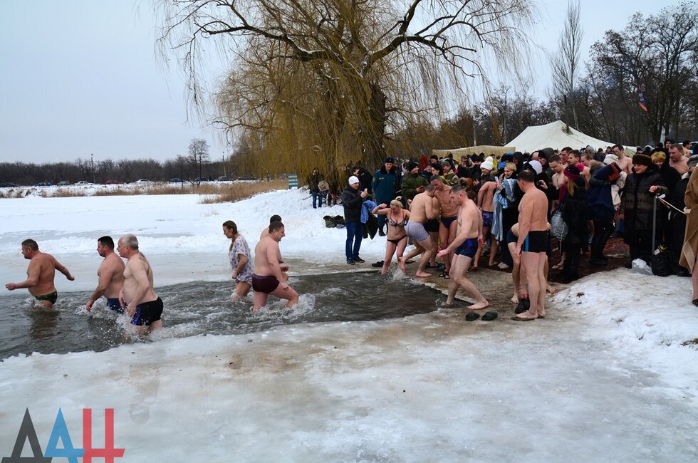 Донецк, 19 янв – корр. ДАН. Сотни жителей крупнейшего в Донецке района - Кировского - собрались сегодня на местном водоеме Чистые пруды, чтобы совершить обряд омовения. Крещенские купания начались около 10:00.