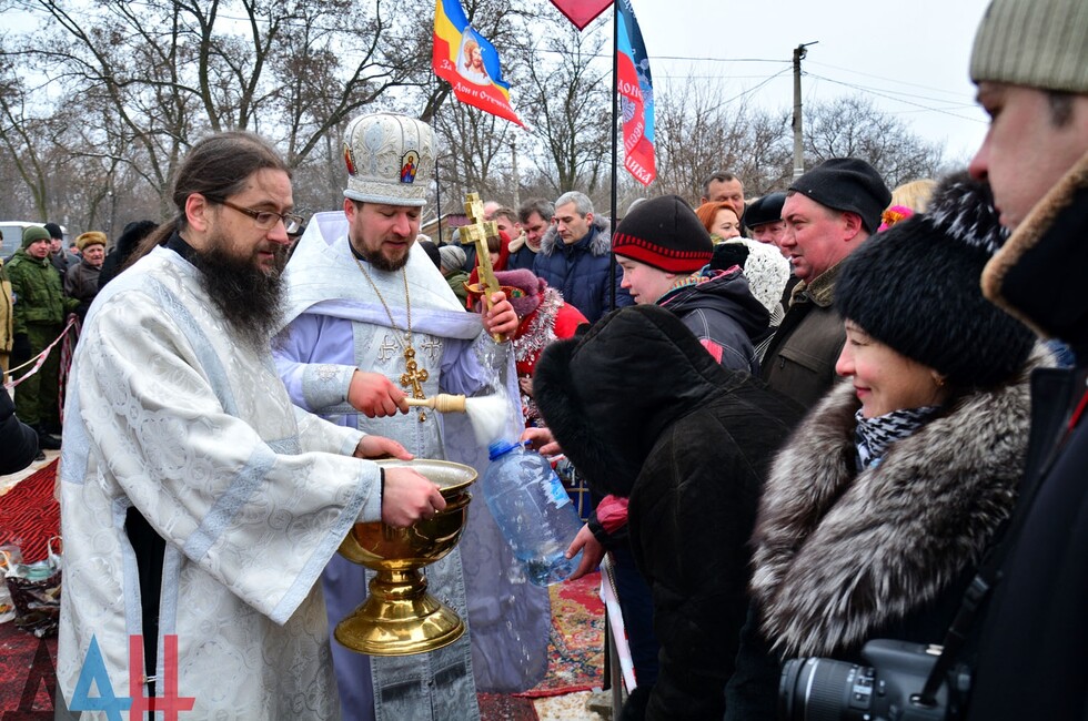 В начале праздника для гостей выступили местные артисты, затем мероприятие проходило под фоновую музыку. Главное торжество началось с освещения купели, обряд провел благочинный Георгиевского округа, протоиерей Свято-Георгиевского храма Дмитрий Чеверда.