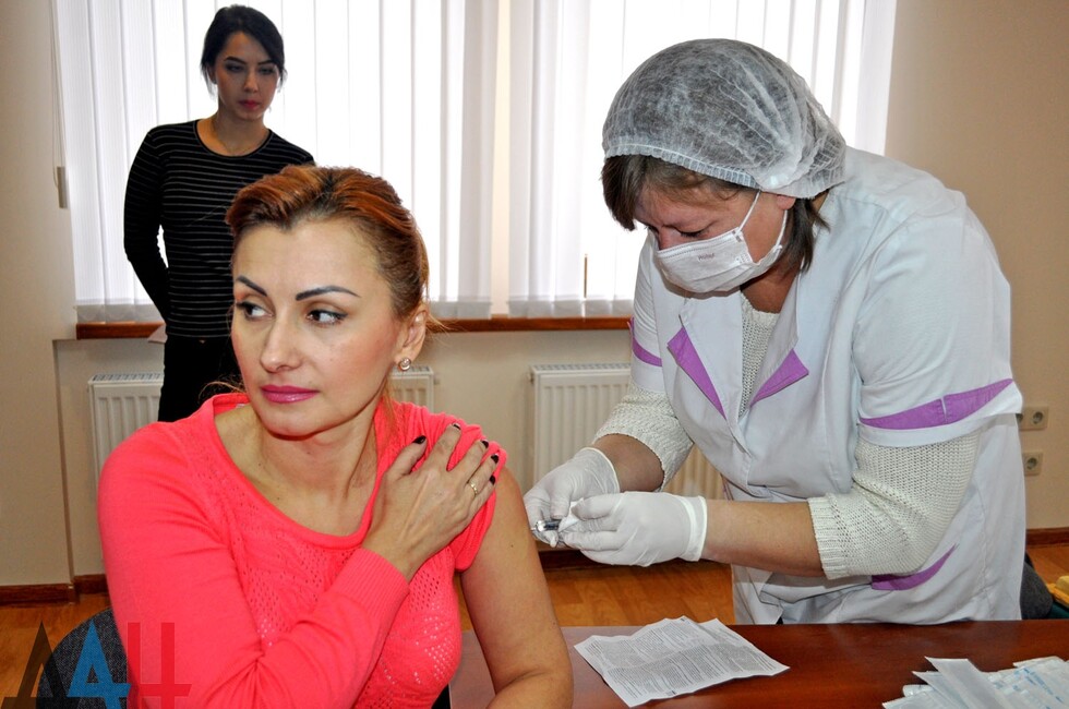 Ранее, 14 октября сообщалось, что медики ДНР приступили к процессу иммунизации населения. К началу зимы планируется бесплатно привить от гриппа порядка 100 тысяч граждан. По данным СЭС, бесплатная вакцинация против гриппа показана воспитанникам детсадов, школьникам, людям преклонного возраста, пациентам с хроническими заболеваниями дыхательной и сердечно-сосудистой систем, беременным, военнослужащим, сотрудникам МВД, МЧС и другим. Всем представителям групп медицинского и эпидемиологического риска желающим пройти процедуру вакцинации необходимо обращаться в учреждение здравоохранения по месту жительства. В свою очередь в Республиканском центре санитарно-эпидемиологического надзора сообщали, что в настоящее время заболеваемость гриппом и ОРВИ низкая, регистрируется обычный сезонный уровень заболеваемости. *сж*рб*дя*ъъ