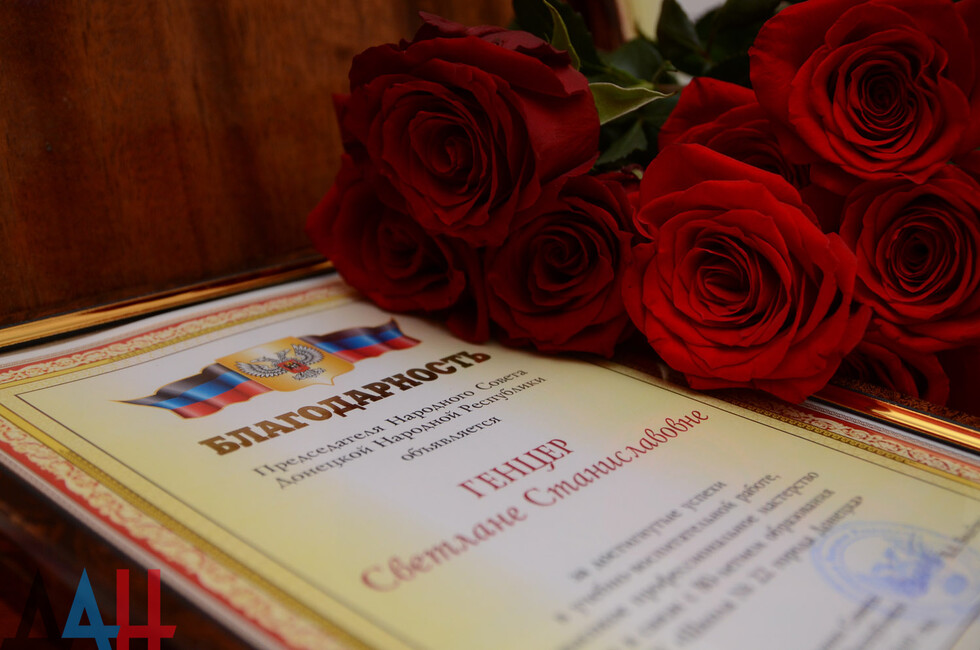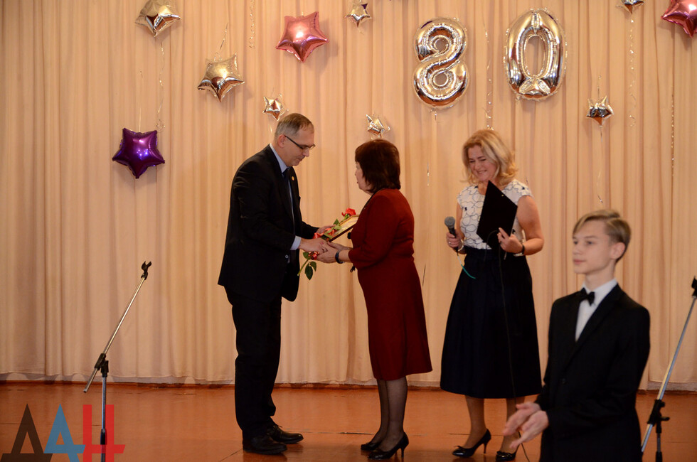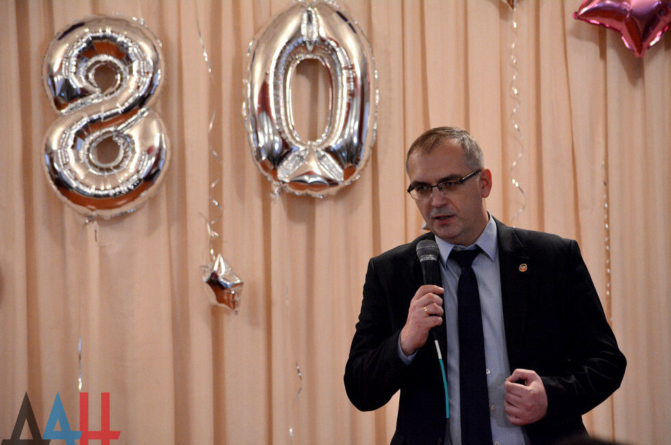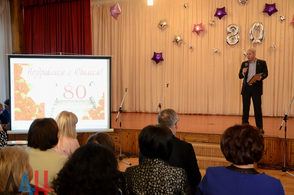 Донецк, 29 ноя – корр. ДАН. Праздничное мероприятие прошло сегодня в школе № 22, расположенной в Ворошиловском районе Донецка, к 80-летию со дня основания учебного заведения. Участие в торжествах принял председатель Народного Совета ДНР Владимир Бидёвка.
