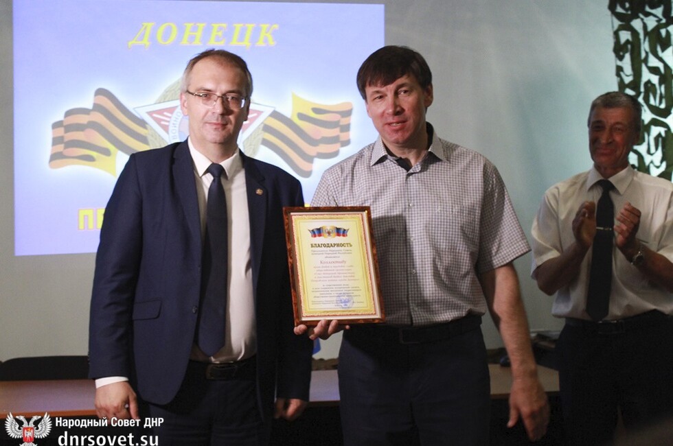 Затем спикер парламента вручил участникам боевых действий в Афганистане государственные награды, директору музея Роману Евстифееву – благодарность Главы ДНР, коллективу учреждения – благодарность Народного Совета.