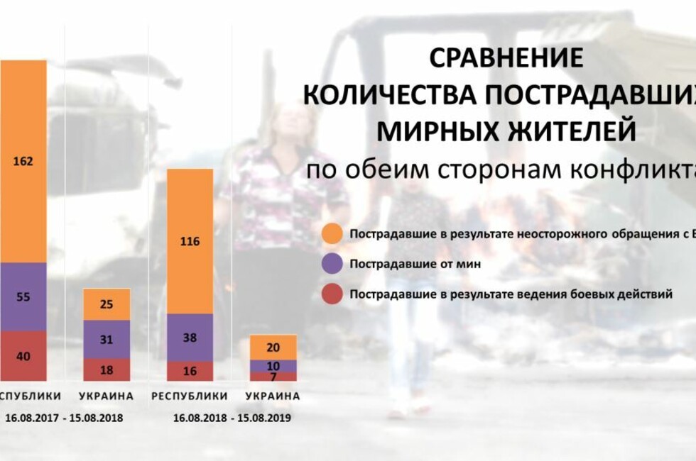 Речь идет о сведениях за период с 16 августа 2018 года по 15 августа 2019 года. Данные подготовлены на основании отчетов ООН и ОБСЕ и информации, собранной общественниками на местах происшествий.