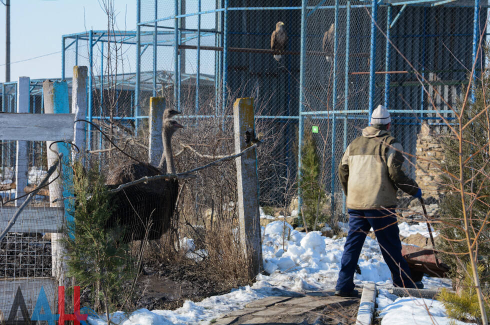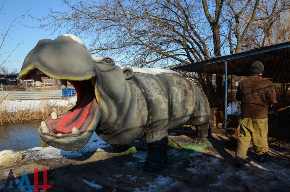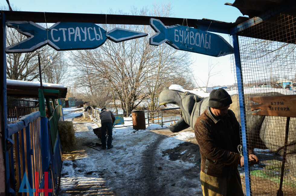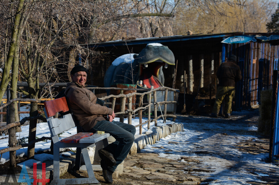 Повседневные труды есть и у работников зоопарка – кормежка животных, очистка вольеров, уборка снега. А один из сотрудников по имени Сергей замешивал цемент для создания новых скульптурных композиций сказочных героев и животных, которые наверняка понравятся юным посетителям.