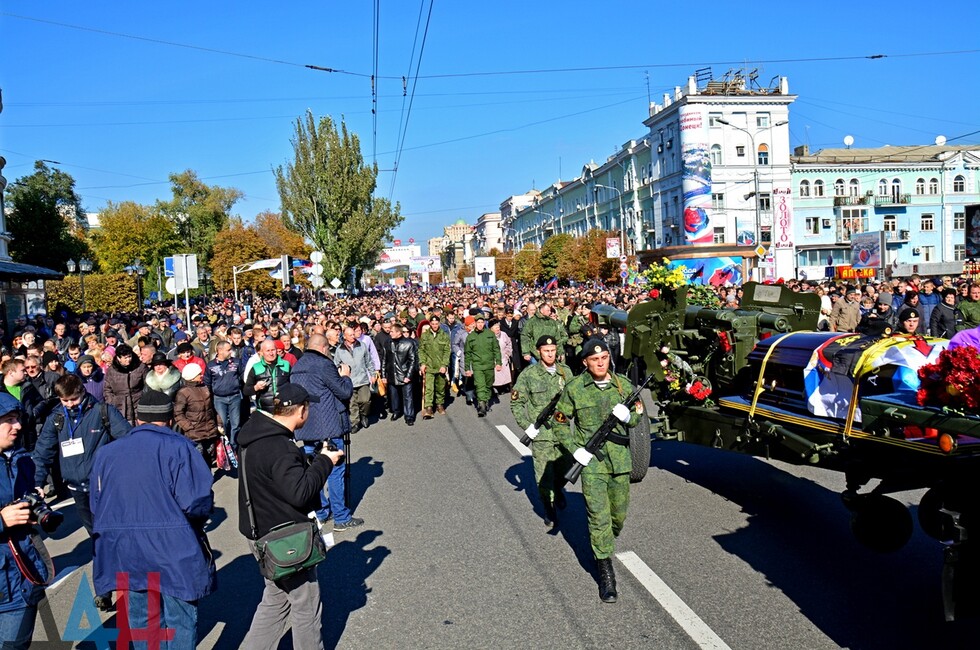 «Сегодня, 19 октября, в Донецке проходит прощание с погибшим в результате террористического акта полковником Вооруженных силы ДНР Арсеном Павловым. В траурном мероприятии приняли участие более 50 тысяч граждан», - отметили в МВД.