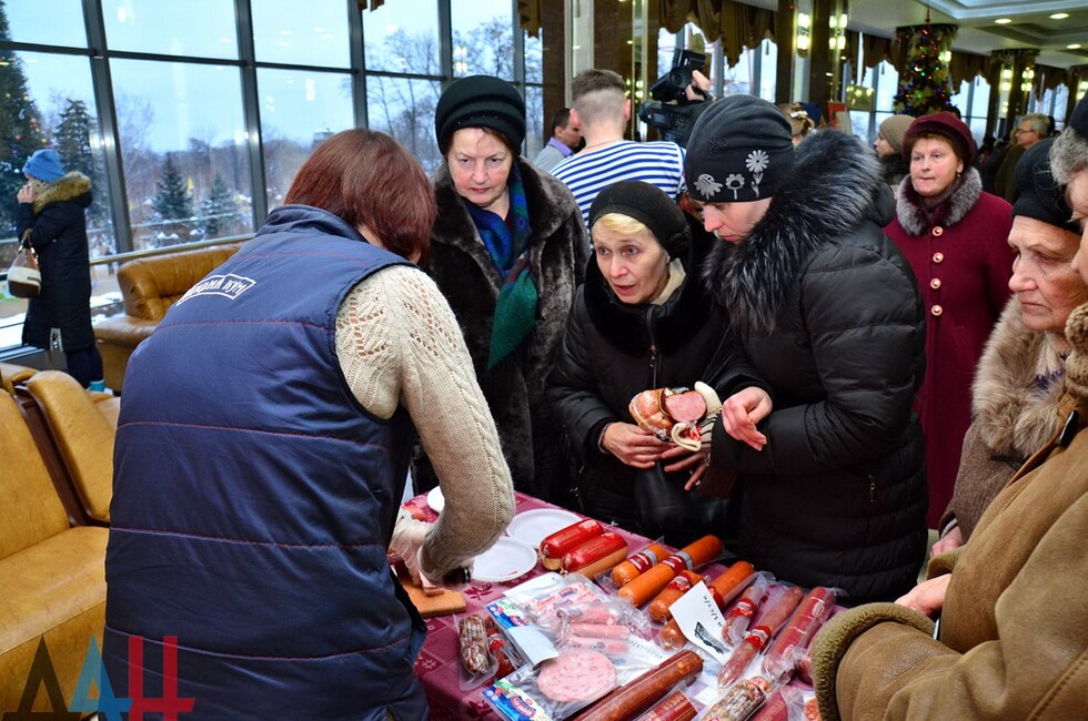 Донецк, 20 дек – корр. ДАН. Выставка-ярмарка собрала сегодня в столичном Центре славянской культуры более 20 сельхозпроизводителей из разных городов и районов Донецкой Народной Республики. Почетным гостем мероприятия стал фермер из Подмосковья Олег Сирота, который представил гостям ярмарки сыр собственного производства.