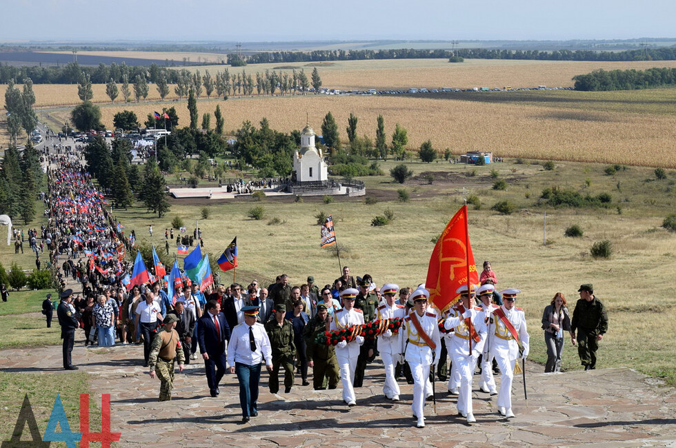 Саур-Могила (Шахтерский район), 7 сен – корр. ДАН. Торжественные мероприятия по случаю 74-й годовщины освобождения Донбасса прошли сегодня на территории мемориального комплекса «Саур-Могила» вблизи города Шахтерск на востоке Донецкой Народной Республики. В них приняли участие более 10 тысяч человек.