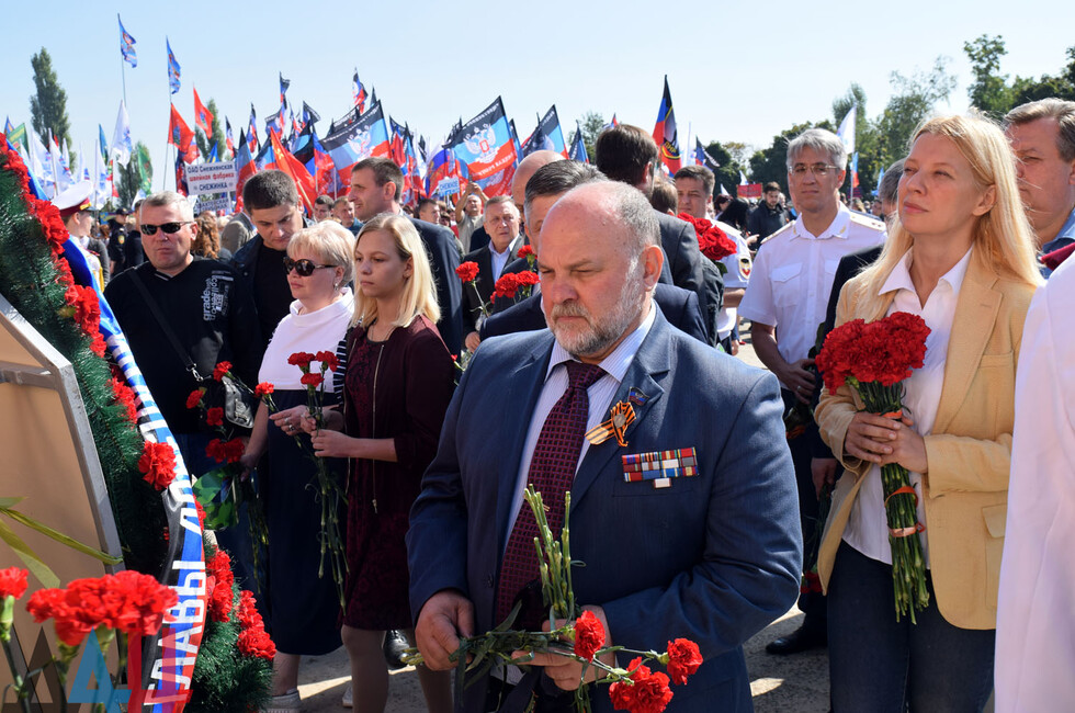 Жители Республики, среди которых Глава ДНР Александр Захарченко, министр обороны Республики Владимир Кононов, министр доходов и сборов Александр Тимофеев, министр угля и энергетики Эдуард Голенко, а также другие представители министерств и ведомств почтили память бойцов, погибших за свободу Донбасса во времена ВОВ и в наши дни.