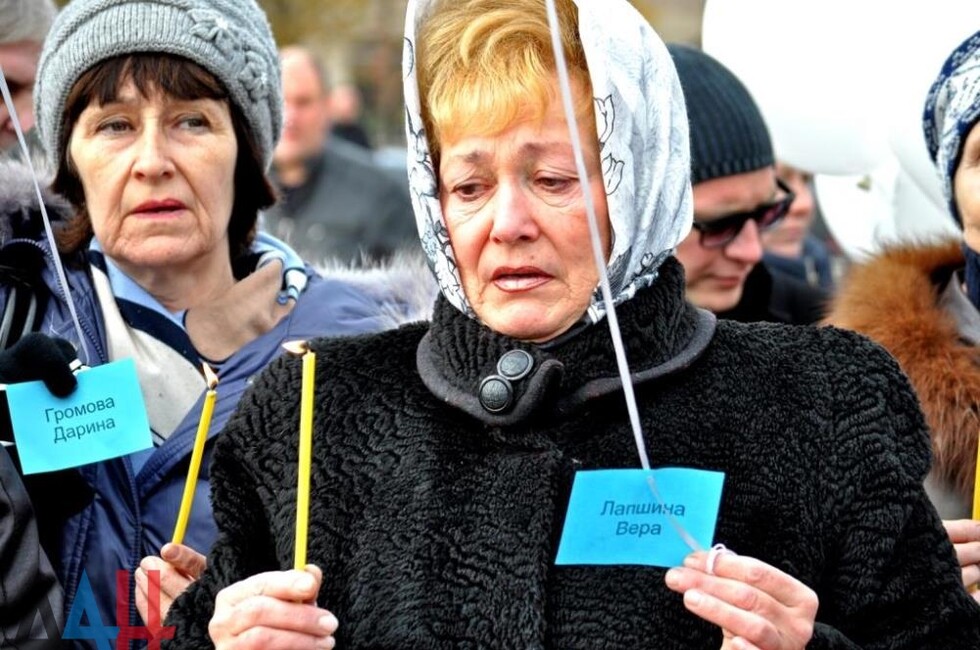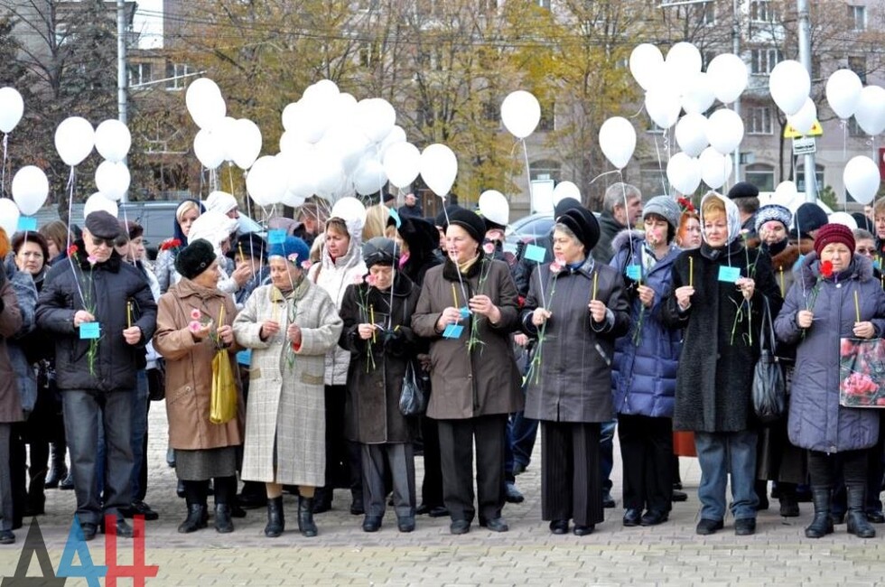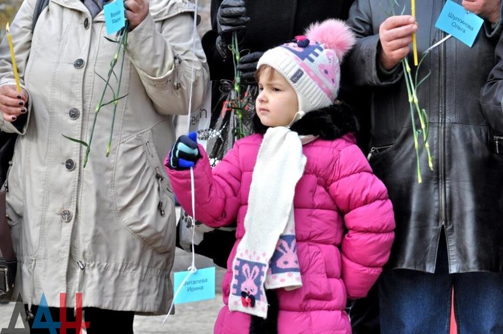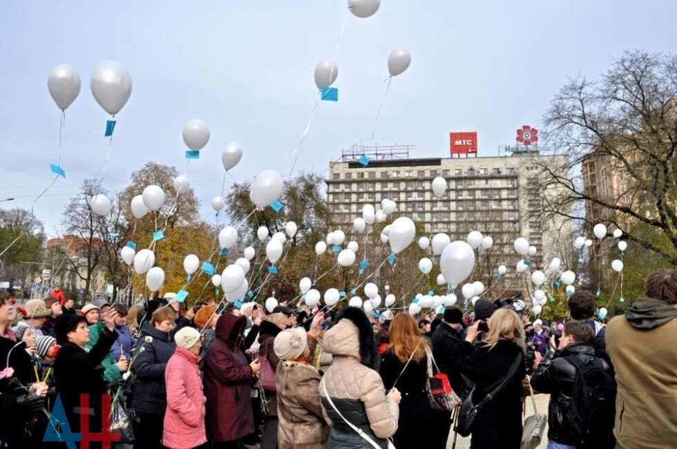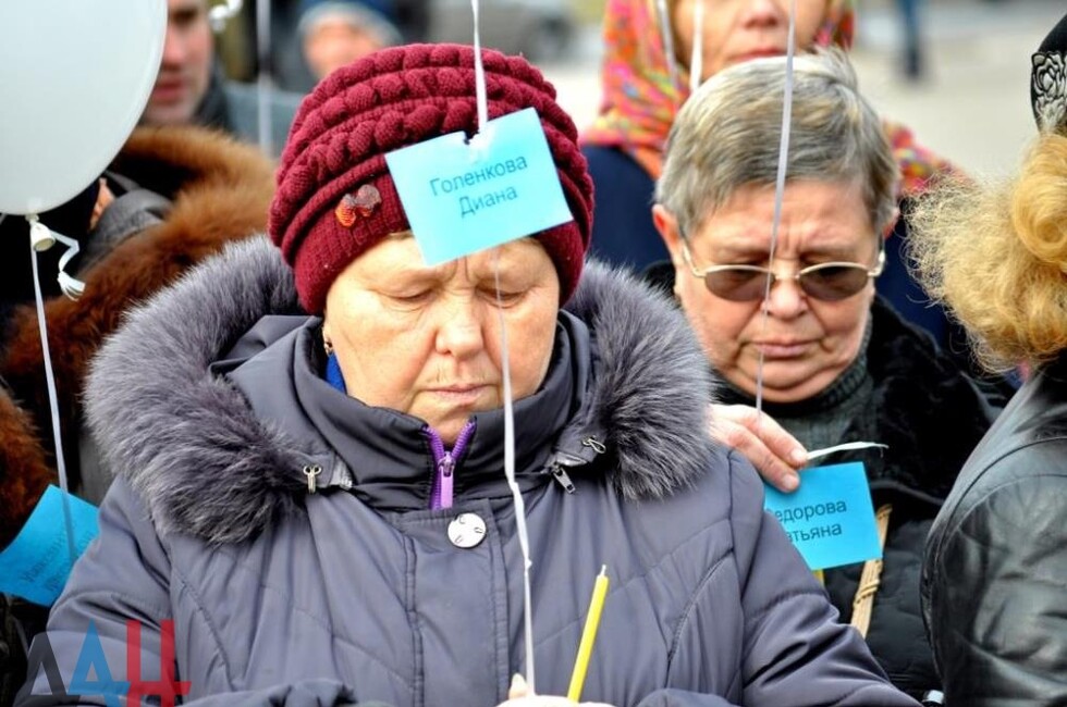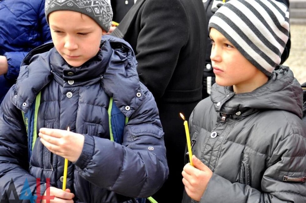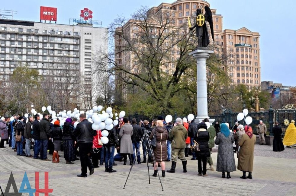 Церемония началась с траурной панихиды, которую провел настоятель собора. Жители держали цветы, свечи, белые воздушные шары с именами 224 погибших, которые в конце акции отпустили в небо. Цветы к памятнику Архангела Михаила, у которого были установлены лампадки и фотография разбившегося самолета, вместе с другими гражданами возложил спикер парламента Республики Денис Пушилин, а также других официальные лица ДНР.