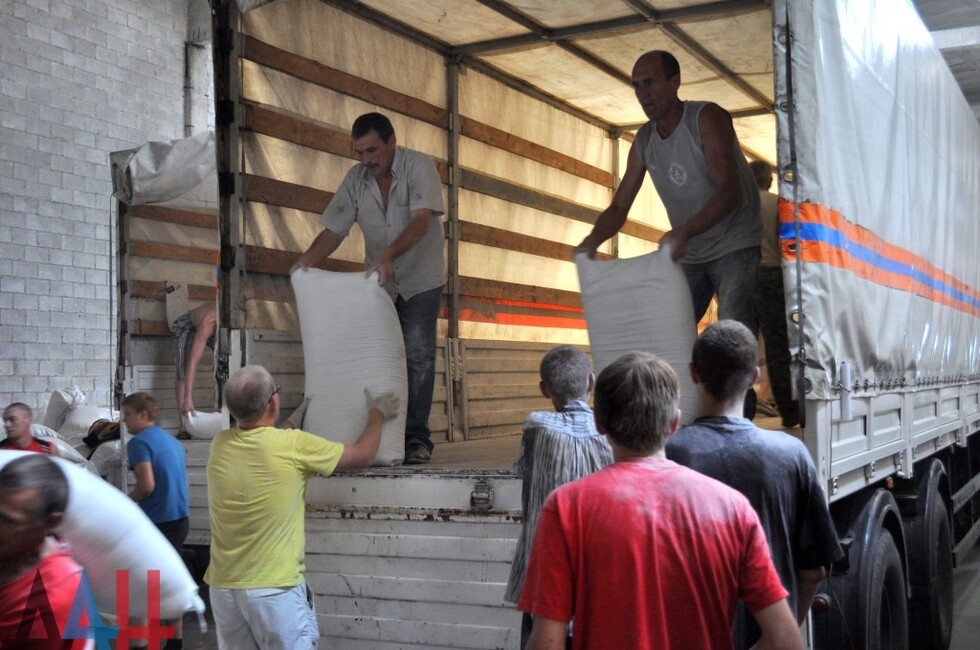 «Сегодня в Республику прибыл 34-й гуманитарный конвой с грузом 550 тонн. В общей массе поступили продукты питания, в том числе крупы, а также медикаменты и школьные принадлежности», - заявил замглавы ЦУВ.