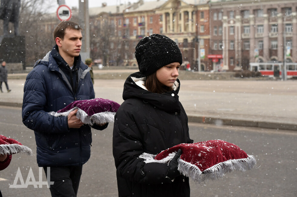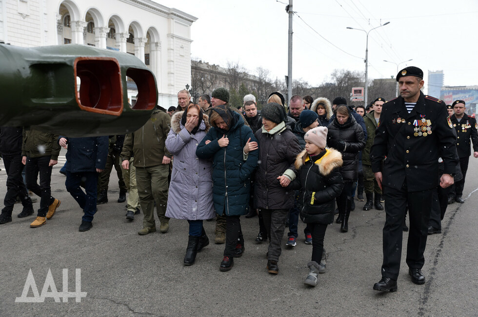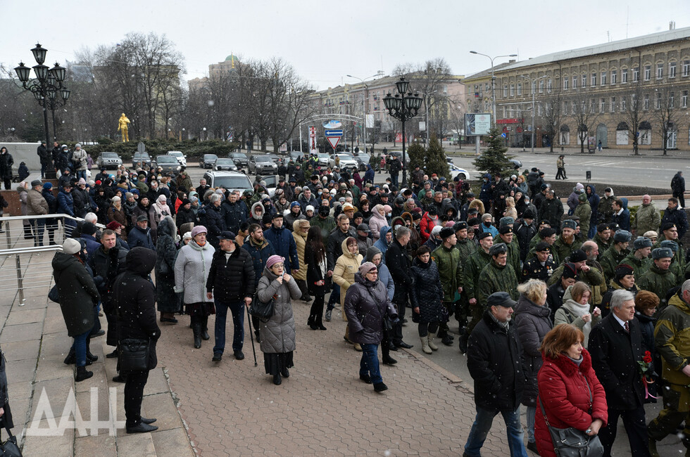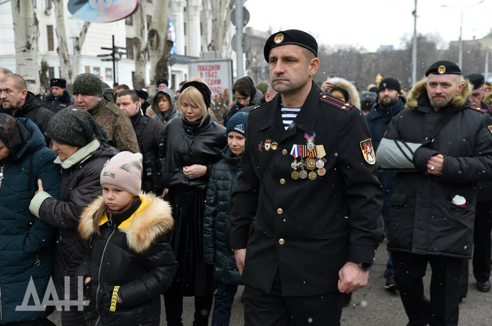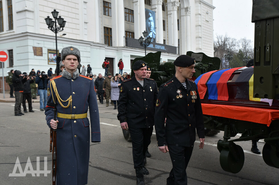 Этому предшествовала церемония прощания с комбатом, которая проходила в Донецком государственном академическом театре оперы и балета им. А.Б. Соловьяненко. Мероприятие собрало порядка тысячи человек, среди жителей был и Глава ДНР Денис Пушилин.