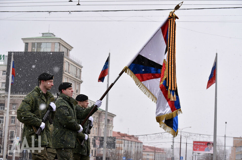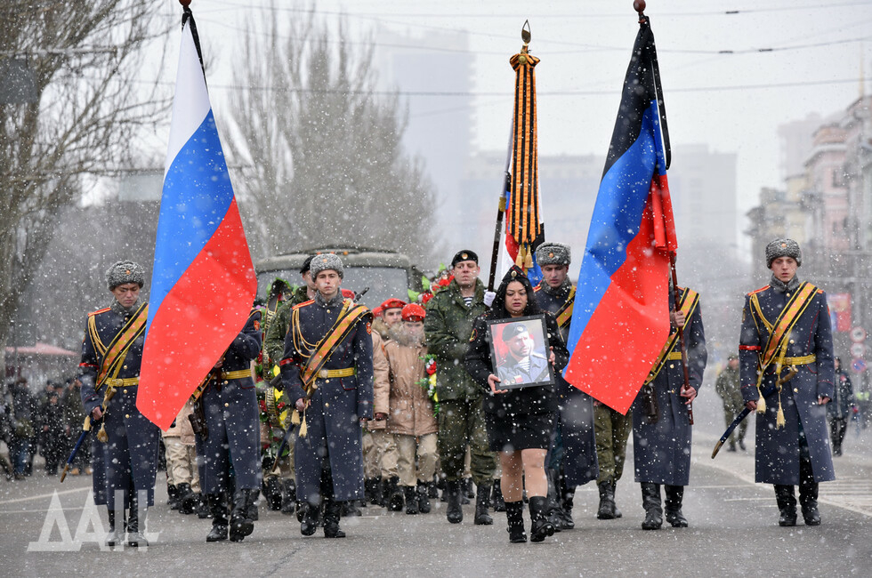 Донецк, 7 мар - корр. ДАН. Гроб с телом командира отдельного разведывательного батальона «Спарта» гвардии полковника Владимира Жоги (Вохи) погрузили на военный лафет гаубицы, захваченной в боях с ВСУ в Дебальцево. Он проследует по главной автомагистрали Донецка – улице Артема.