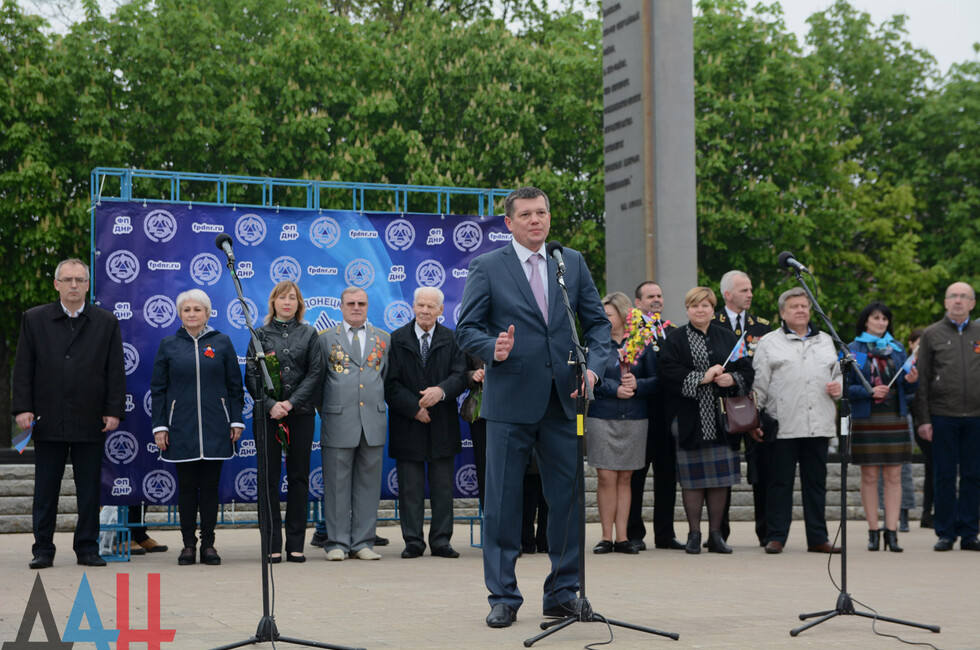 На площади собралось несколько тысяч человек. На мероприятии присутствовали председатель Народного Совета ДНР Владимир Бидёвка, председатель Федерации профсоюзов Максим Паршин, руководитель Центрального исполкома общественного движения «Донецкая Республика» Алексей Муратов и другие.