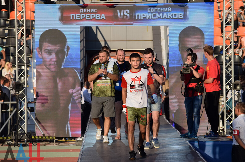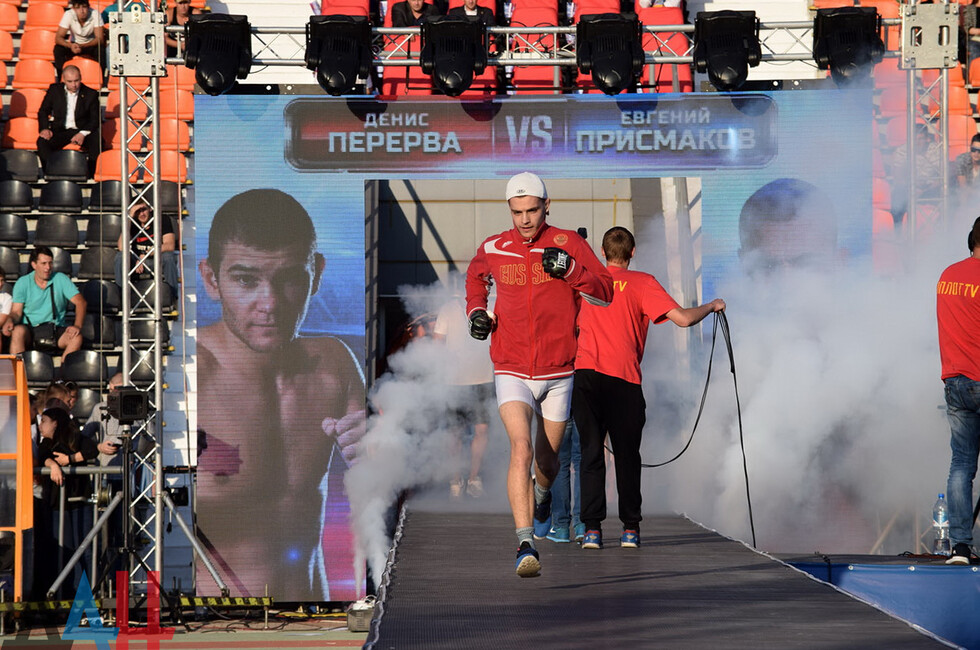 Формат сегодняшних противостояний - два раунда по пять минут, а последние три боя - по три раунда, пять минут каждый. Бои будут судить пять рефери. Для удобства болельщиков состязания транслируются на экраны стадиона. Открыли турнир бойцы легкой весовой категории. На ринге встретились россиянин Илья Волынец и его визави из Донецка Николай Присмаков. Второй одержал уверенную победу еще в первом раунде.