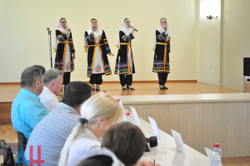 В ходе круглого стола участники выступали с докладами о национально-культурных объединениях ДНР. В особенности обсуждалась их деятельность и роль в условиях войны в Донбассе. Кроме того, представители разных национальностей выступили с вокальными и хореографическими номерами, исполнив народные танцы и песни.
