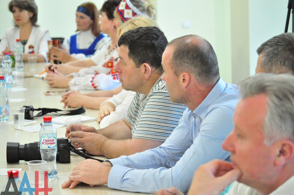 В обсуждении приняли участие представители национальных общин и организаций ДНР, в том числе – Культурно-просветительское общество ромских женщин «Мерикля», Культурно-просветительское общество белорусов «Неман», Городское общество греков имени Федора Стамбулжи и другие. Также на мероприятии присутствовал президент Совета по межнациональному сотрудничеству при губернаторе Ленинградской области Юрий Паламарчук.