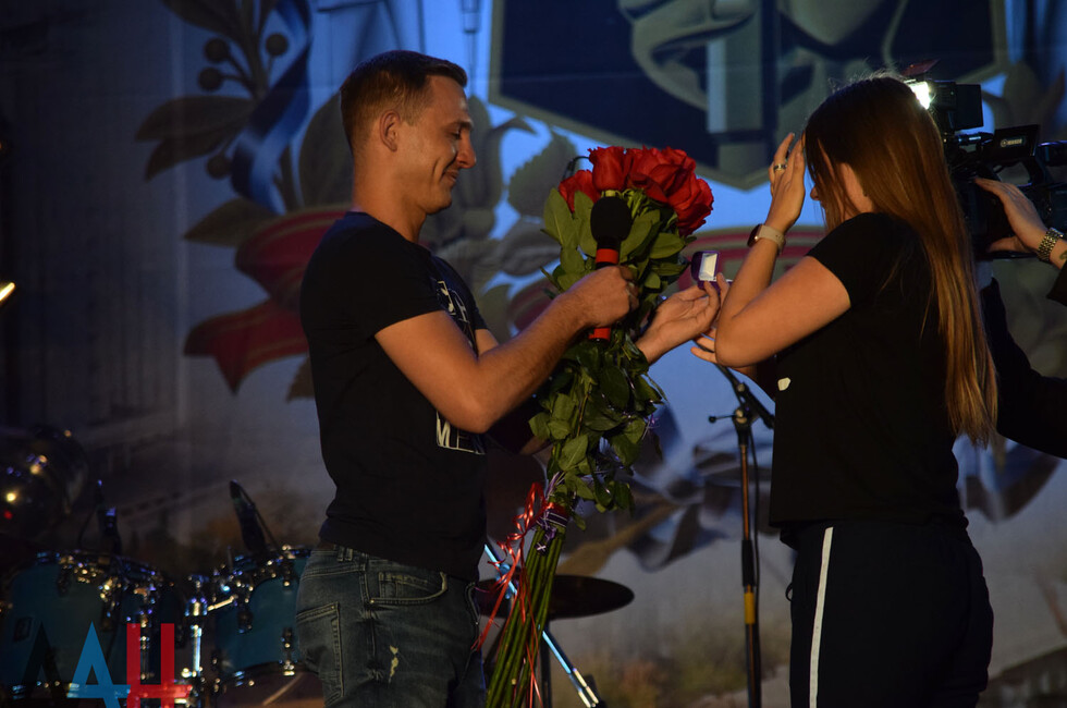 А пока хорошее настроение собравшихся выражается не только в овациях, но и в поступках. Между выступлениями российских звезд ведущие вечера зачитали предложение руки и сердца любимой от одного из дончан. Смельчаку его избранница ответила согласием.