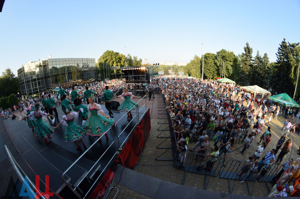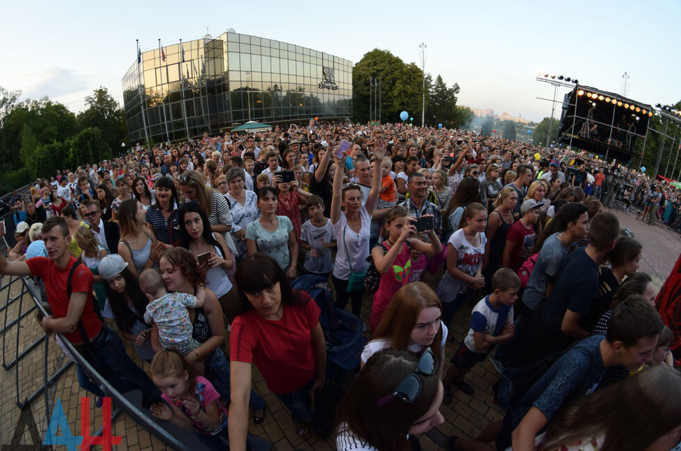 Мероприятие открыли республиканские танцевальные и вокальные коллективы и исполнители. Далее выступила российская рок-группа «Зверобой», которая исполнила свои композиции «Голос мой», «Эти русские», «Едут, едут БТРы», «Чистое небо». Поздравить горожан пришел и.о. главы горадминистрации Донецка Алексей Кулемзин.