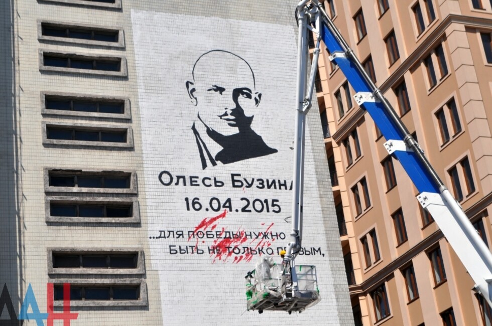 Олесь Бузина выступал с резкой критикой украинского национализма, построенного на исторических фальсификациях и русофобской пропаганде. Бузина был застрелен 16 апреля 2015 года возле его дома в Киеве, незадолго до этого в знак протеста против цензуры он ушел с должности шеф-редактора газеты "Сегодня".