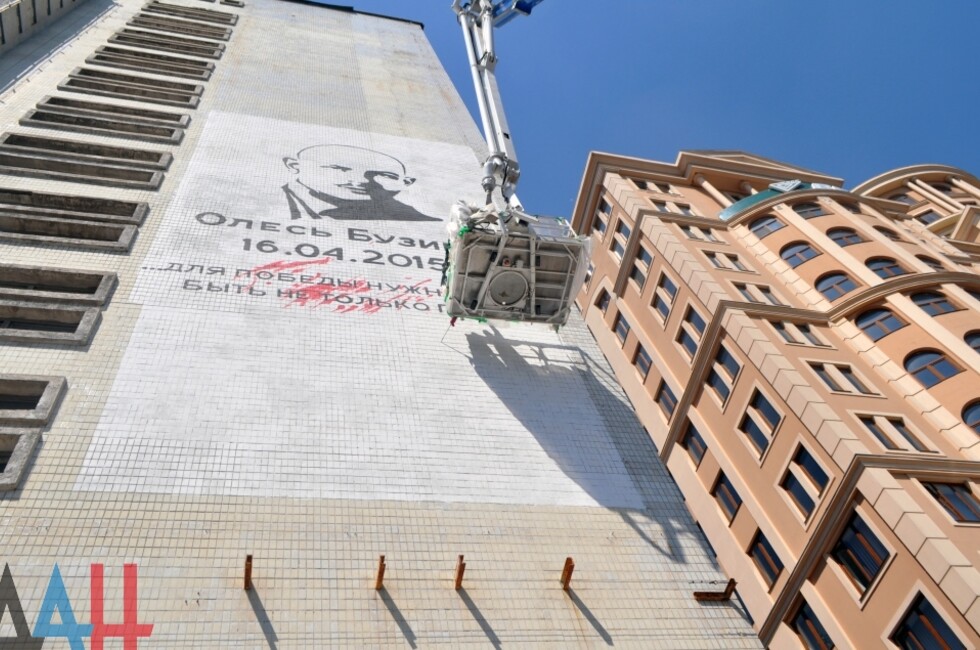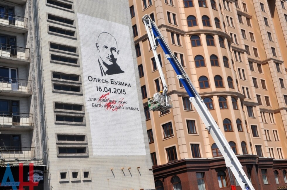 Донецк, 13 июн – ДАН. Портрет убитого в 2015 году украинского журналиста и писателя Олеся Бузины появился сегодня, в 47-ю годовщину со дня его рождения, на стене здания в центре Донецка. Об этом сообщил корр. ДАН с места события.