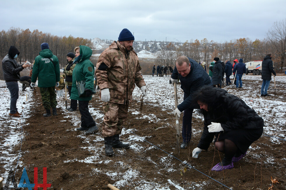 Всего на площади 0,14 гектара будут приживаться порядка 2000 саженцев, выращенных в питомниках ДНР. Первые из них были высажены руководителями министерств и ведомств, депутатами Народного Совета ДНР, представителями местных властей, общественниками и другими жителями Республики.