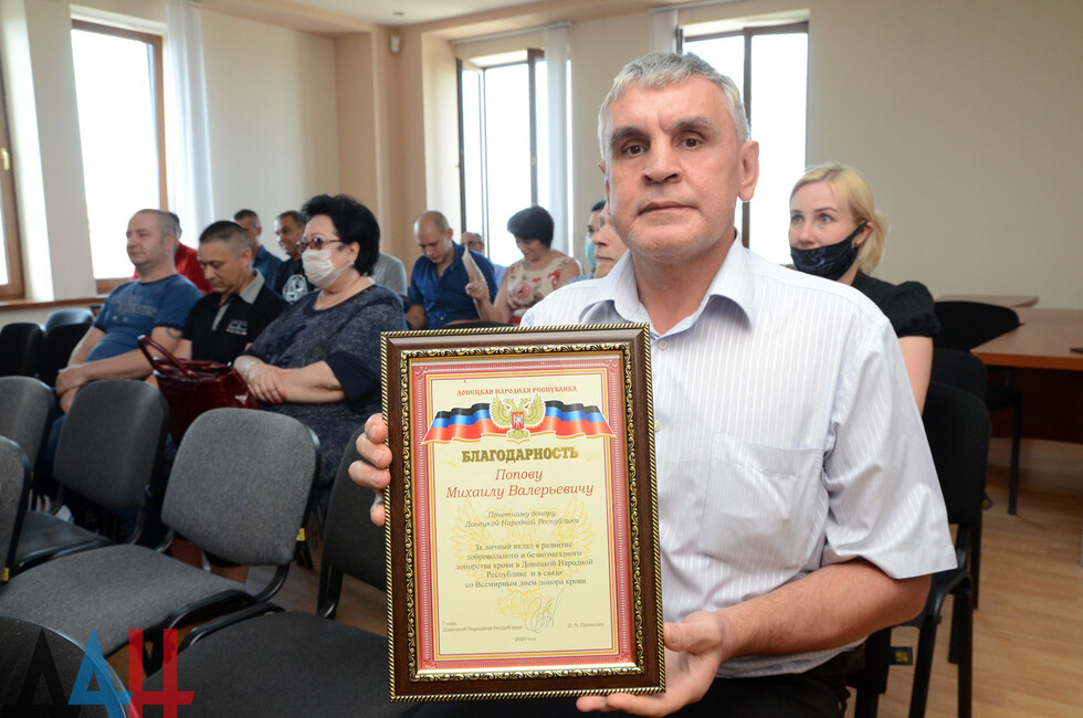 День донора учрежден в Всемирной ассамблеей здравоохранения и отмечается 14 июня. В ДНР действует служба крови, ключевыми учреждениями которой являются – Республиканский центр крови, макеевская и енакиевская станции переливания. *зх*пг