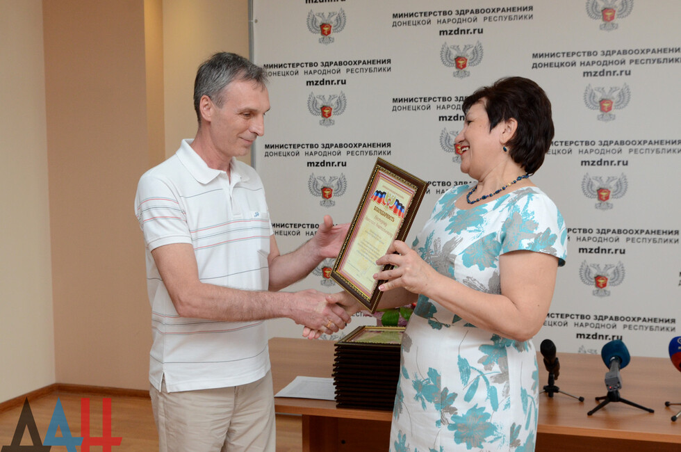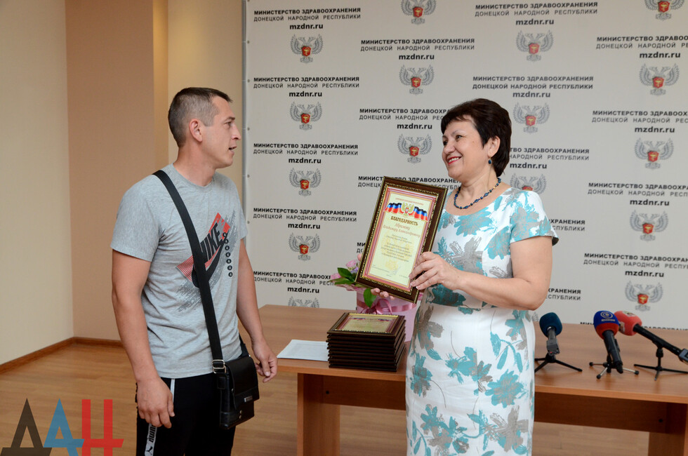 Донецк, 16 июн – корр. ДАН. Почетные доноры крови ДНР были в торжественной обстановке награждены сегодня благодарностями Главы Республики. В мероприятии личное участие приняла министр здравоохранения Ольга Долгошапко.