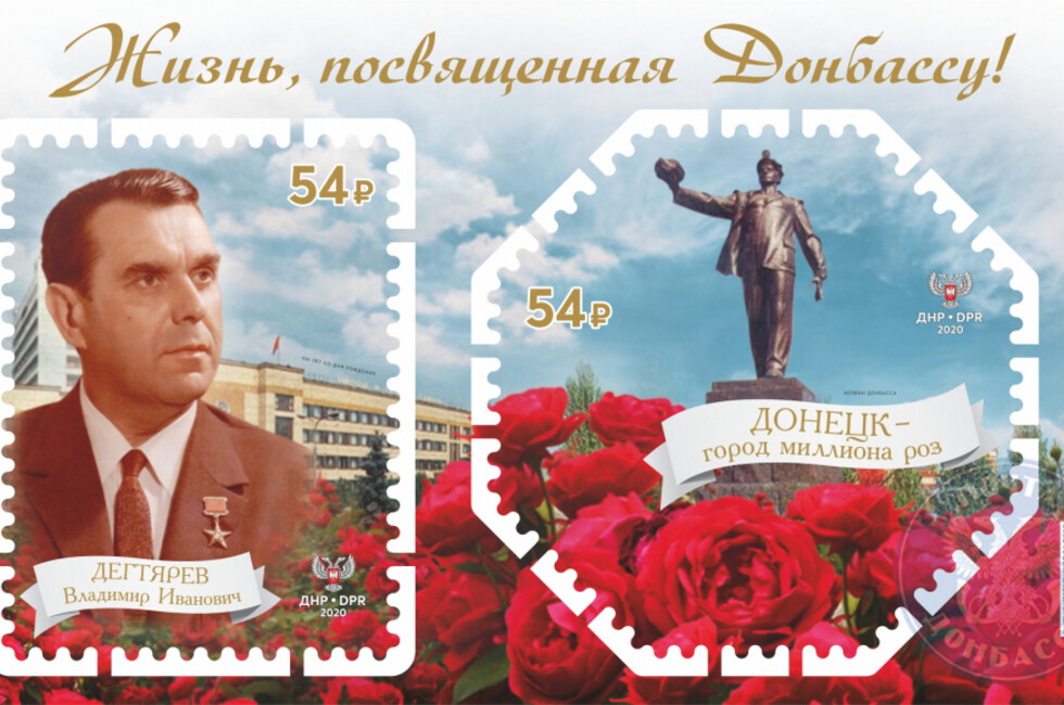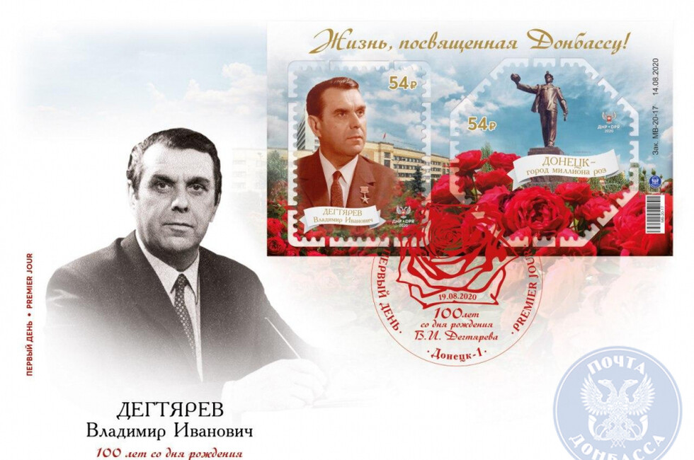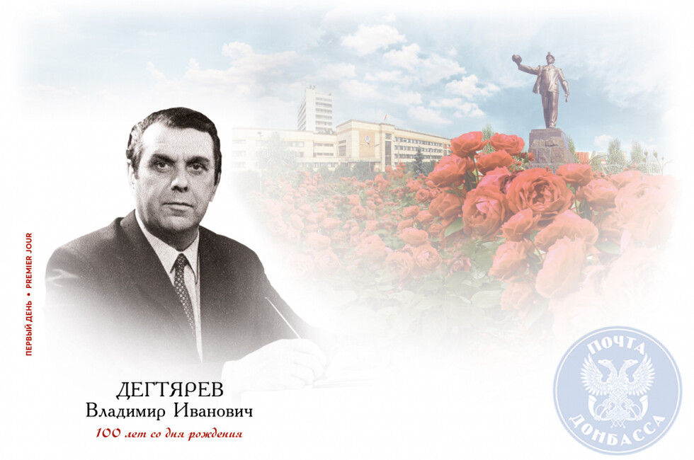 На правой стороне конверта находится черно-белая фотография Дегтярева, фоном выступает коллаж с известными видами Донецка. Конверт напечатан тиражом 1000 экземпляров, его стоимость –12 рублей.