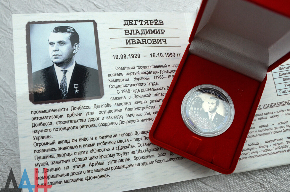 Владимир Дегтярев родился в Ставрополе в 1920 году. В Донбасс прибыл после освобождения края от немецко-фашистских захватчиков. Участвовал в восстановлении угледобывающих предприятий. В должности первого секретаря Донецкого обкома КПУ (с 1963 по 1976 год) провел реформу угольной отрасли, инициировал создание в регионе ряда научно-исследовательских учреждений и широкое гражданское строительство. При нем в Донецке возвели дворец молодежи «Юность», здание цирка и краеведческого музея, а пединститут был реорганизован в университет (ныне — Донецкий национальный университет). Также проводилось масштабное озеленение промышленных городов, а областной центр украсил миллион кустов роз. Ранее сегодня в память о знаменитом руководителе региона состоялся митинг у его памятника в центре Донецка. *зх*дя