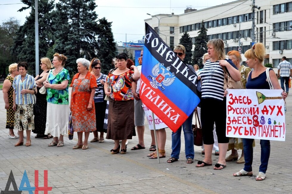 Донецк, 21 июл – Корр. ДАН. Флешмоб «Донбасс говорит по-русски» прошел сегодня утром в центре Донецка. В мероприятии приняли участие представители правящего общественного движения «Донецкая Республика», депутаты Народного Совета и жители мегаполиса.