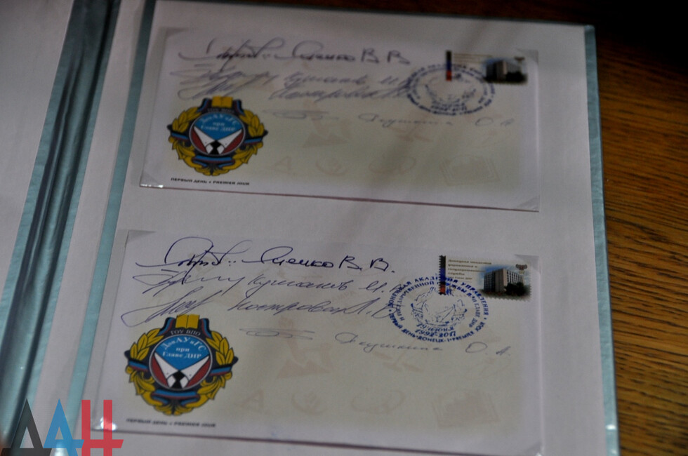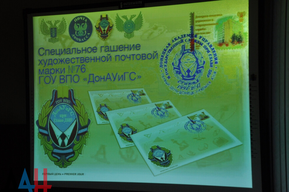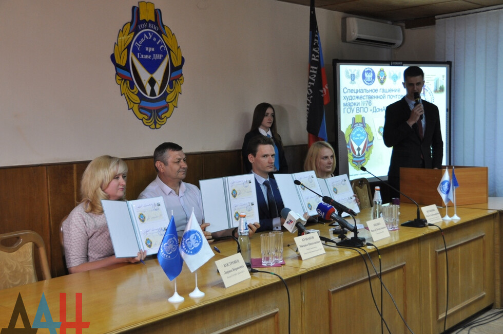 Донецк, 19 июн – ДАН. ГП «Почта Донбасса» сегодня ввело в обращение марку «Донецкая академия управления и государственной службы при Главе ДНР» в честь 25-летия со дня основания вуза. Спецгашение прошло в зале ученого совета 1-го корпуса учебного заведения.