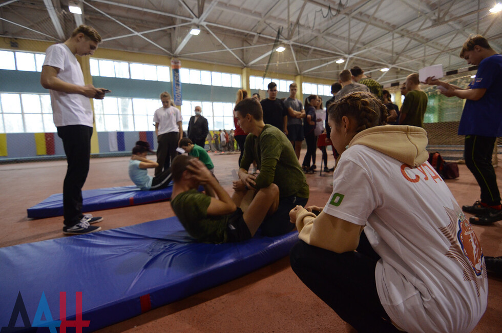 Донецк, 19 дек – корр. ДАН. Сто шестьдесят жителей ДНР приступили сегодня к выполнению норм государственного физкультурно-спортивного комплекса «Готов к труду и обороне» в столичном манеже «Донецк».