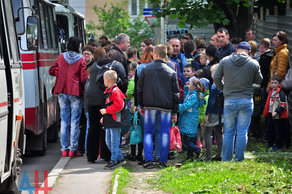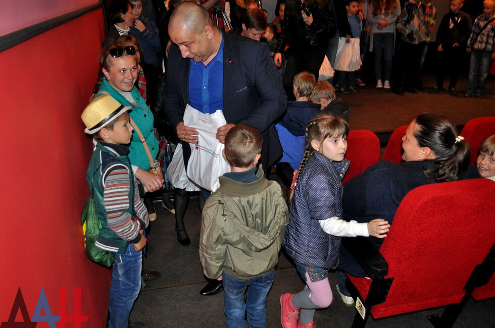 Всего в Донецк приехали около 100 юных горловчан в сопровождении родителей. Вначале Быкадоров и активисты ОД «ДР» вручили детям сладости. Затем в «КиноКульте» для детей старшего возраста показали фильм «Мы с дедушкой», а малыши посмотрели мультфильм «Балерина». После посещения кинотеатра гостей из Горловки ждала экскурсия по столичному парку кованых фигур.