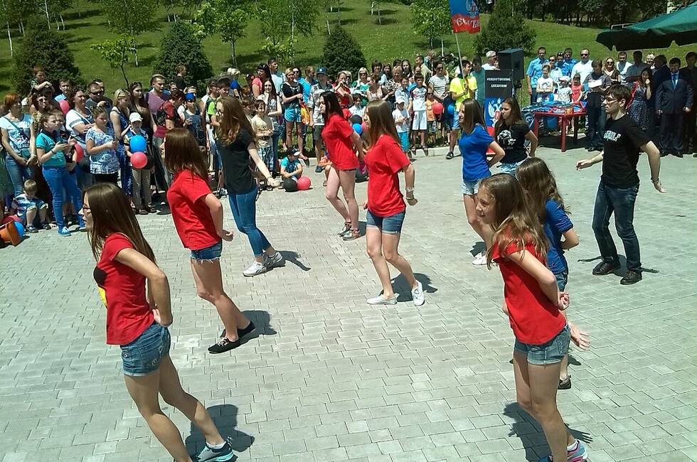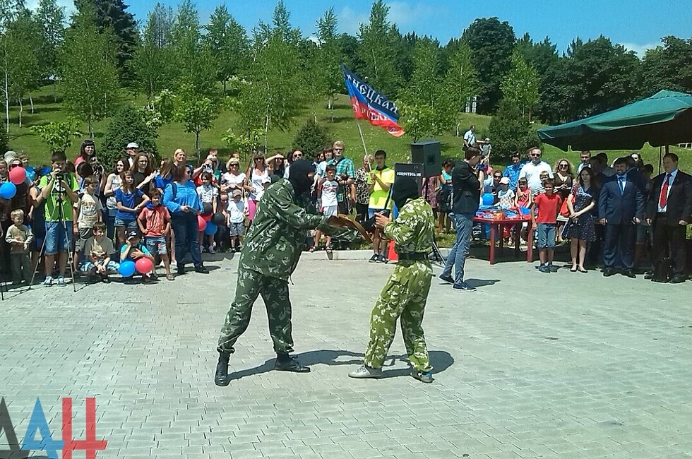 Среди участников акции было множество детей и подростков, каждому ребенку досталось мороженное и воздушные шары под цвет государственного флага Донецкой Народной Республики.