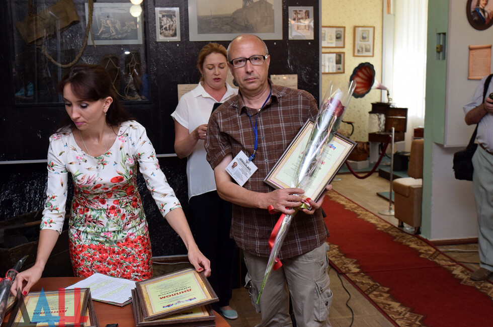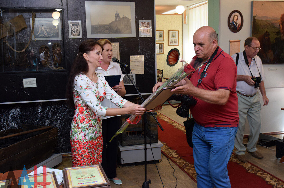 Донецк, 24 авг – корр. ДАН. (Внимание! Исправлена ошибка в последнем абзаце. Правильно писать: 38 фотографий) Торжественное награждение победителей и участников республиканского конкурса фотографий «Славим шахтерский труд», посвященного 70-летию профессионального праздника горняков прошло сегодня в одном из залов Донецкого краеведческого музея. Мероприятие собрало несколько десятков жителей из ДНР и подконтрольного Киеву Донбасса.