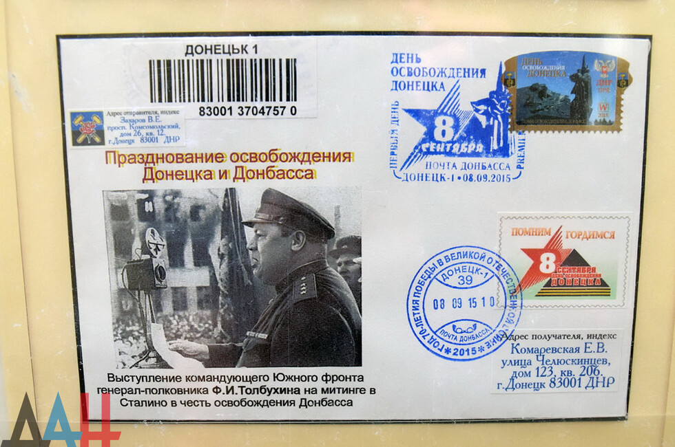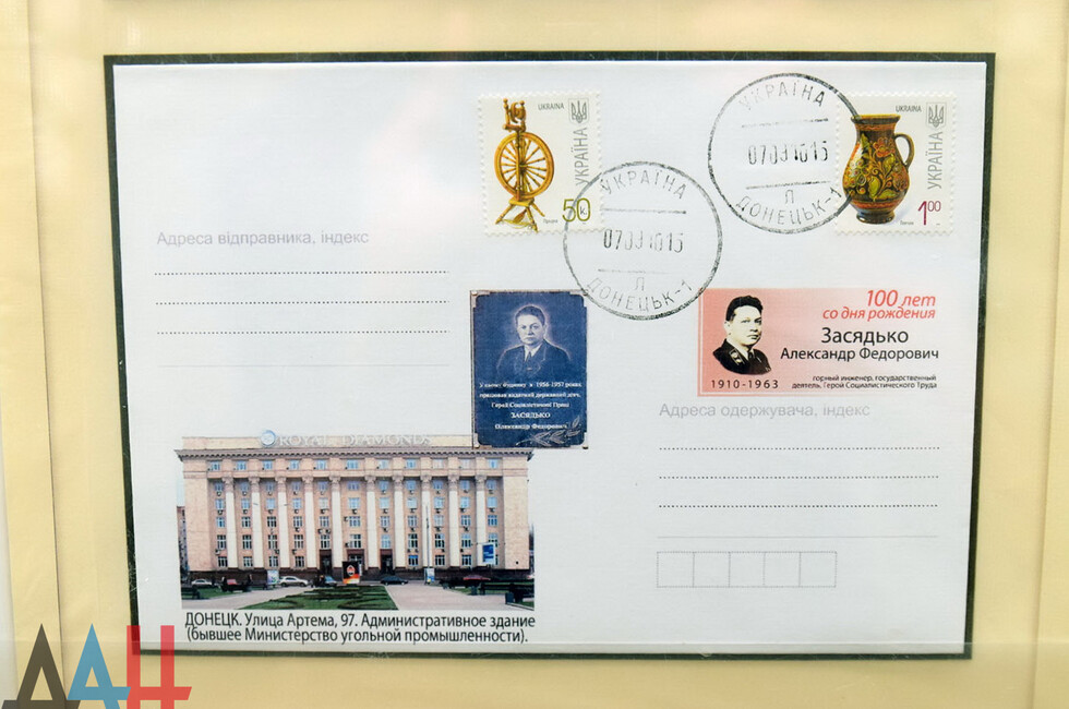 По информации организаторов выставку приурочили к 100-летнему юбилею присвоения поселку Юзовка статуса города. На марках и конвертах – история не только Донецка, но всего Донбасса, ее выдающиеся деятели. Коллекцию для выставки подготовил известный донецкий филателист Владимир Захаров.