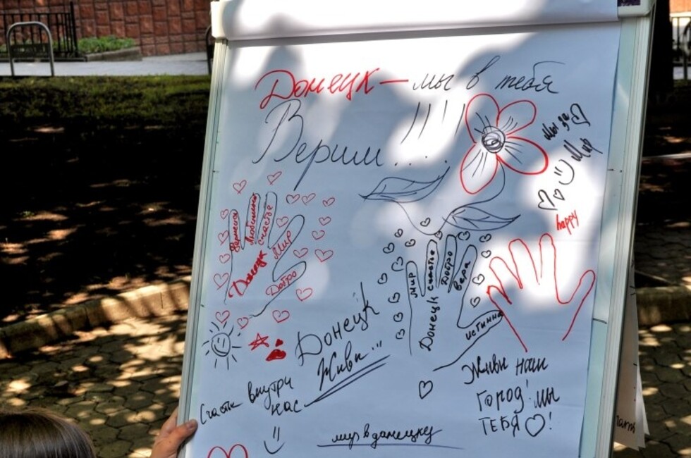 Донецк, 16 июл – корр. ДАН. Выставка детских рисунков «Война глазами детей», посвященная теме боевых действий на территории ДНР, открылась сегодня в центре Донецка при участии ОД «Донецкая Республика». В мероприятии присутствовали представители движения, в том числе первый заместитель главы исполкома Алексей Муратов и руководитель столичной общественной приемной "Донецкой Республики" Борис Рымарь.
