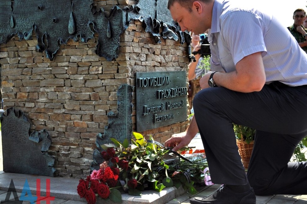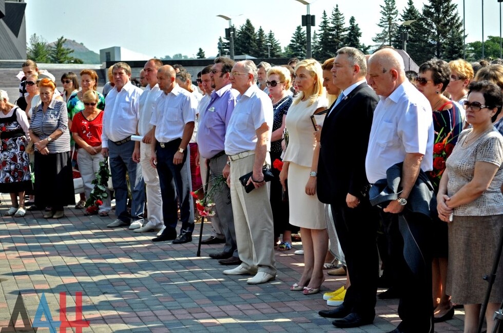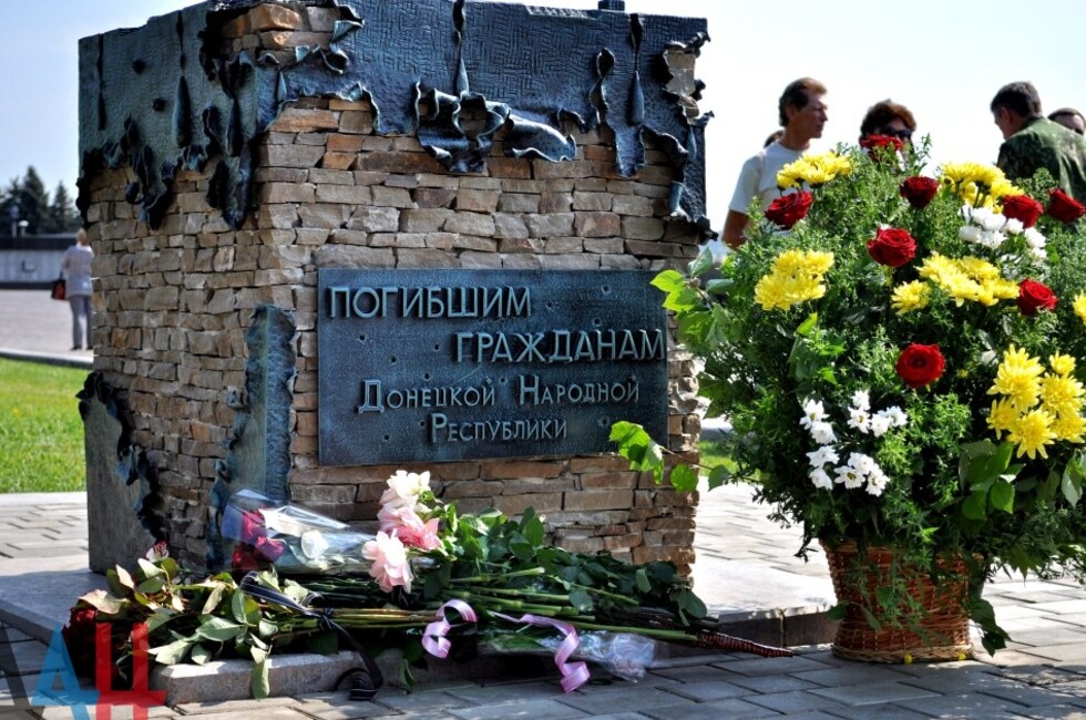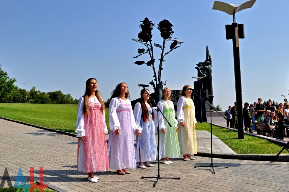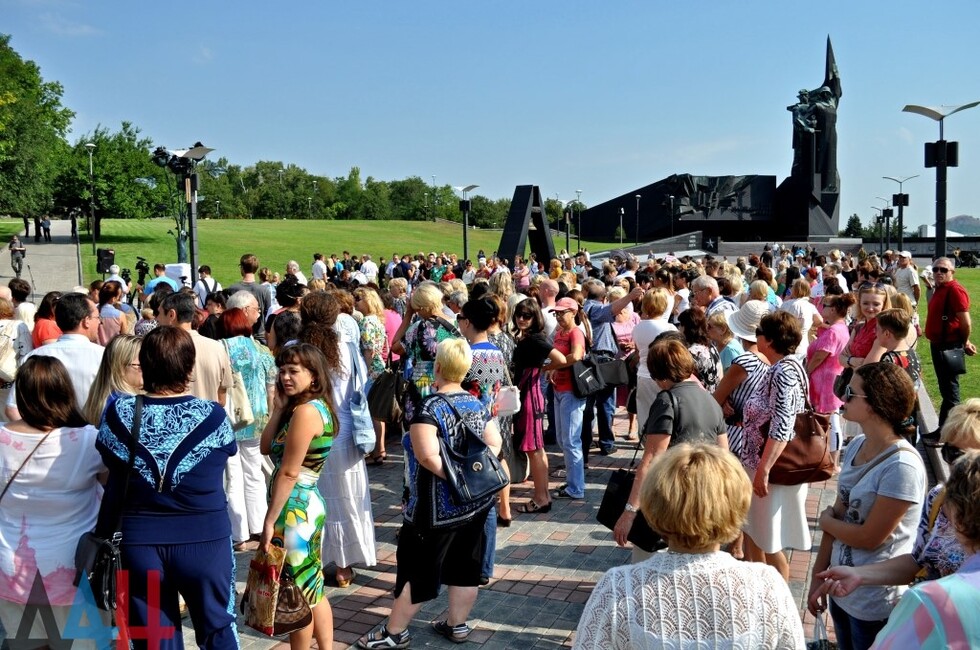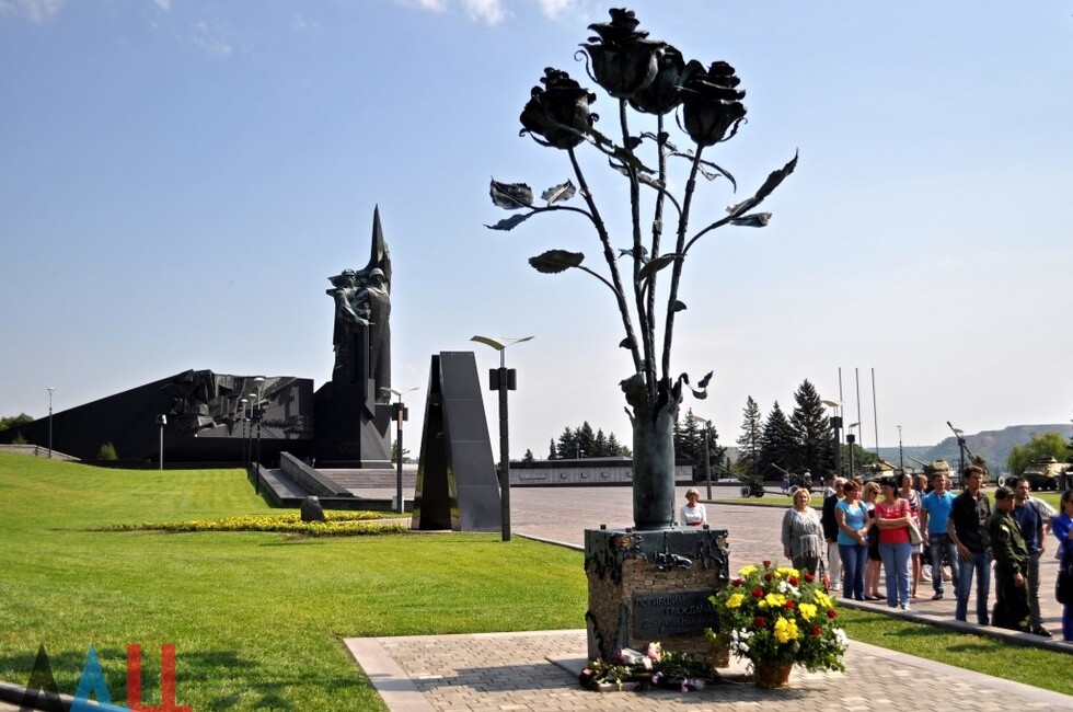 Донецк, 28 авг - корр. ДАН. Памятник погибшим от рук украинских карателей мирным жителям Донбасса бы открыт сегодня в центре Донецка. На мероприятие собрались около трех сотен горожан, многие пришли с детьми.
