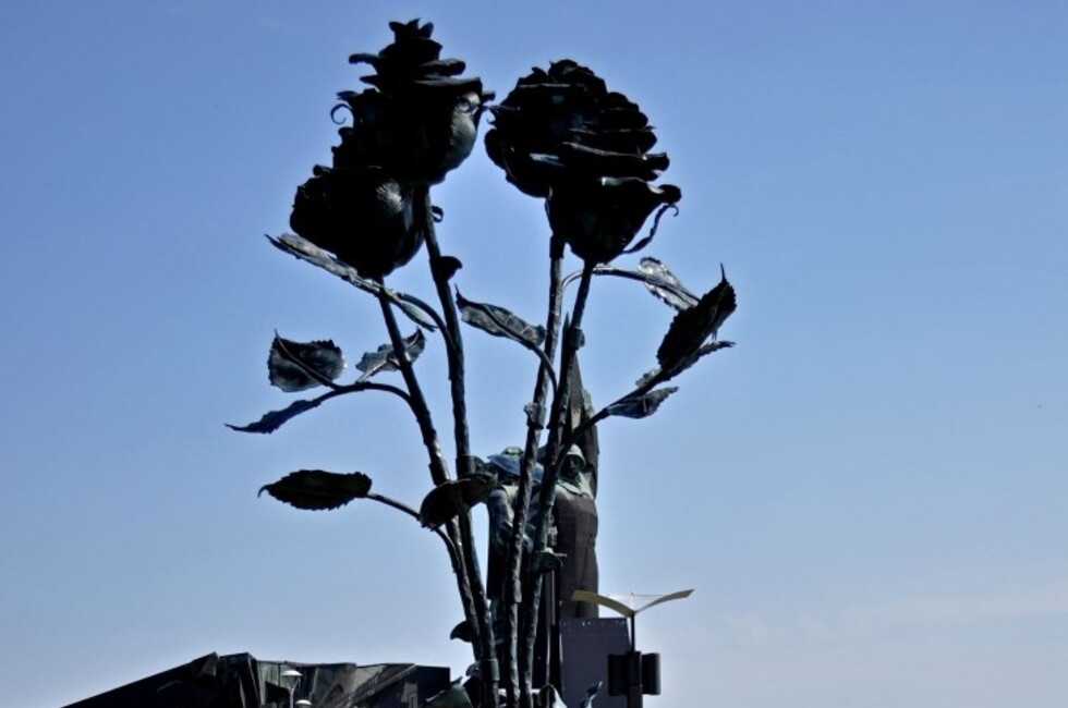 Мемориал находится в парке Ленинского комсомола, на берегу реки Кальмиус. Он представляет собой установленный на мраморном постаменте снаряд, из которого прорастают четыре розы. Высота – 5,3 метра. Рядом с монументом находится памятник «Твоим освободителям, Донбасс».
