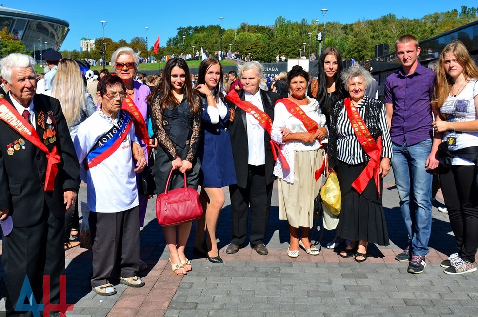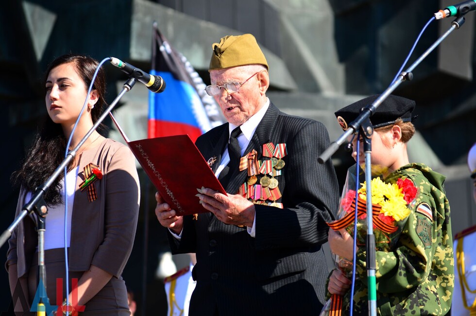«Сегодня день, когда мы одновременно склоняем наши головы в память о тех, кто ценой собственных жизней отстоял Родину, и поздравляем тех, кто выжил и сегодня находится рядом с нами. Благодаря этим людям мы с вами улыбаемся, живем полной жизнью и строим планы на будущее. И наш долг передать подвиг героев своим потомкам», - сказала жительница Донецка Елена.