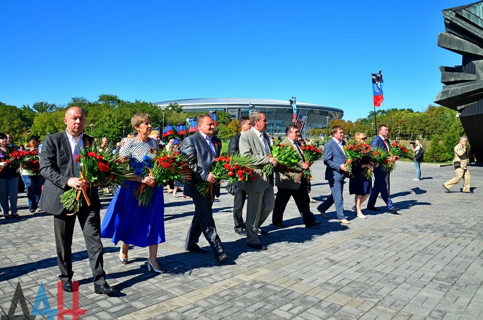После этого собравшиеся возложили цветы к мемориалу, а представители донецкой городской администрации выпустили в небо десятки белых голубей, символизирующих мир.