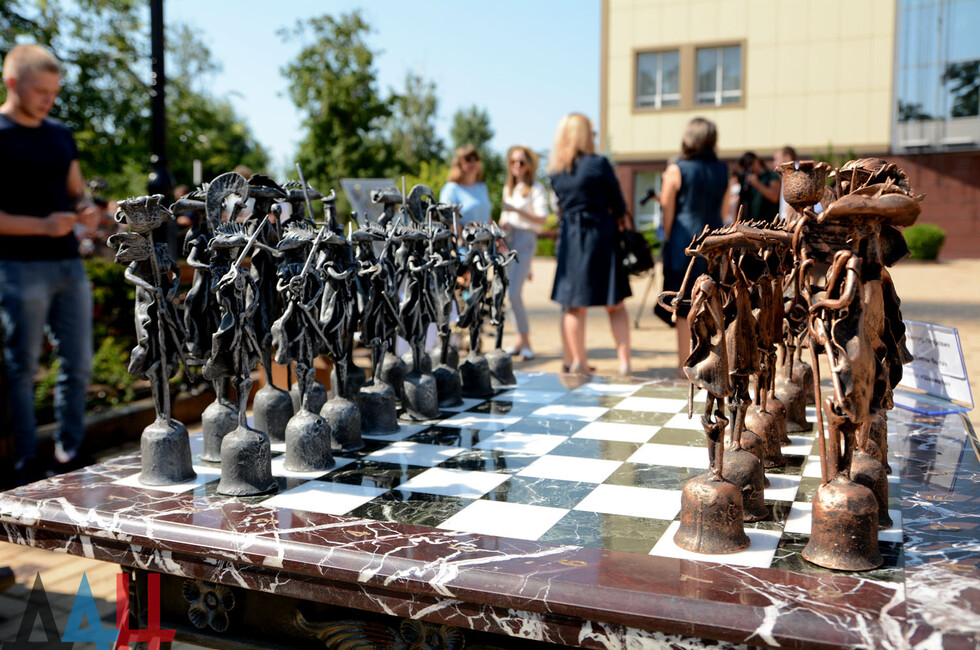 Наибольшее внимание посетителей привлекли шахматы, сделанные известным донецким кузнецом Виктором Михалёвым. Корреспондент ДАН пообщался с автором работы.