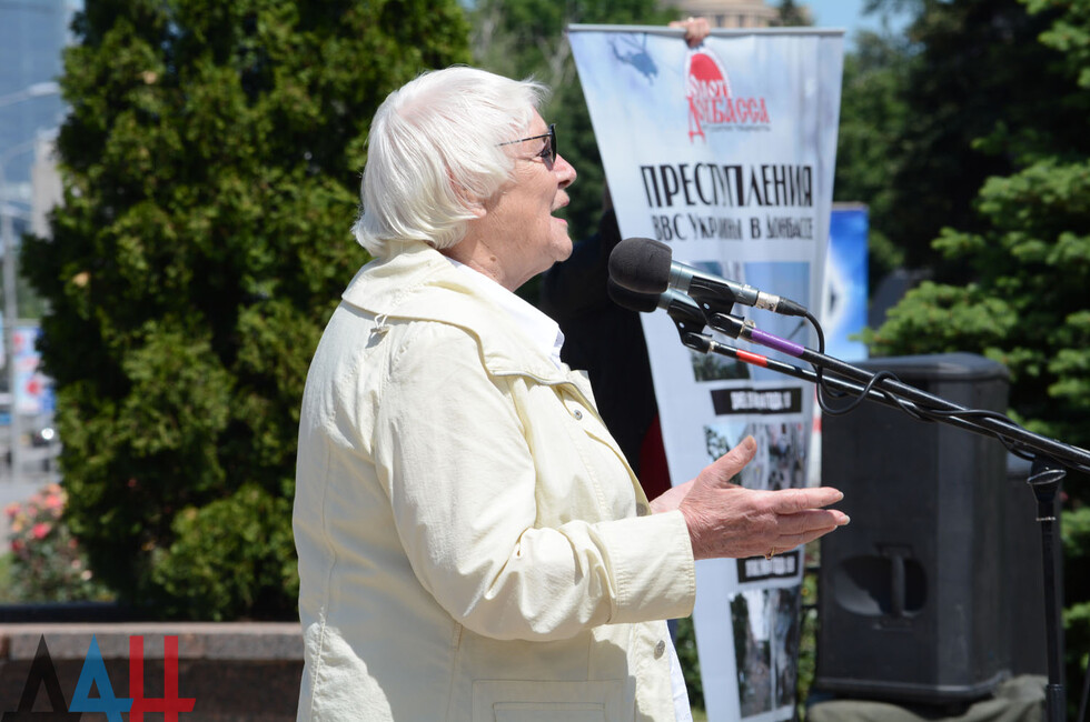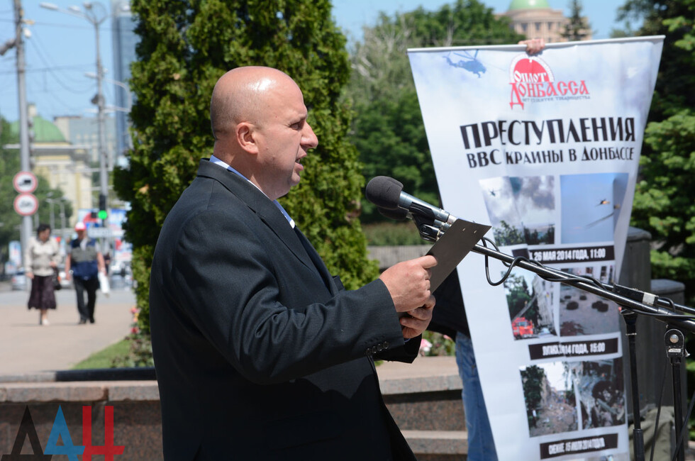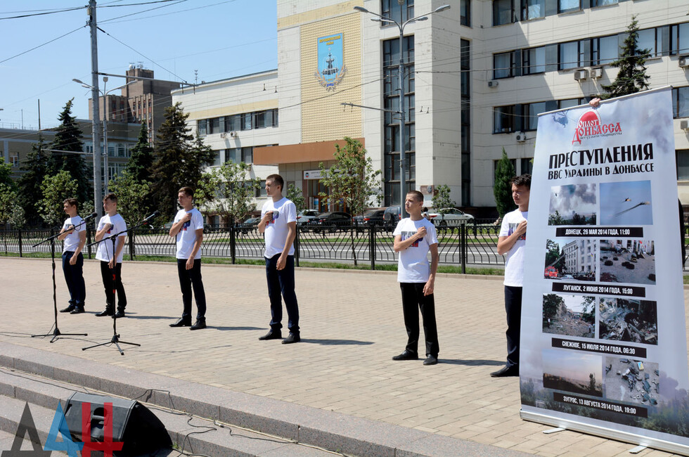 Донецк, 26 мая – корр. ДАН. Митинг-реквием «Донецкое небо» в память о жертвах, погибших в результате первой атаки Донецка авиацией вооруженных сил Украины, прошел сегодня в центре столицы Республики.