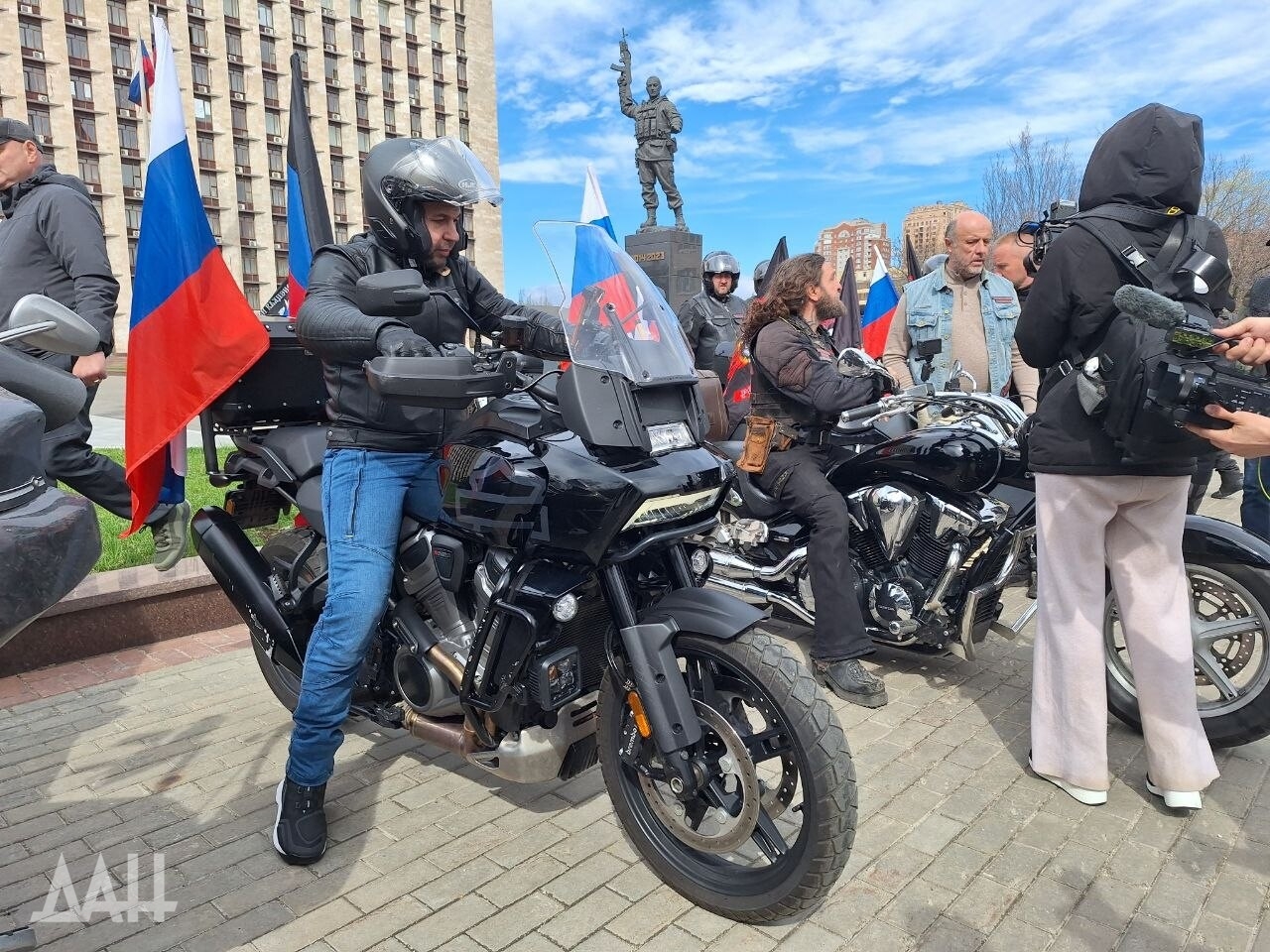 Донецк, 8 апр — ДАН. Мотопробег в честь 12-й годовщины со Дня провозглашения ДНР прошел в Донецке. Его провел мотоклуб «Ночные волки» с его лидером Александром Залдастановым и Глава Республики Денис Пушилин.