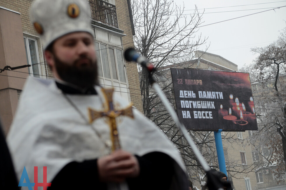 Донецк, 22 янв – корр. ДАН. Панихида по погибшим в результате обстрела украинской армией остановки общественного транспорта 22 января 2015 года прошла сегодня на месте трагедии в жилом массиве Боссе в Ленинском районе Донецка. Об этом сегодня сообщил корреспондент ДАН с места событий.