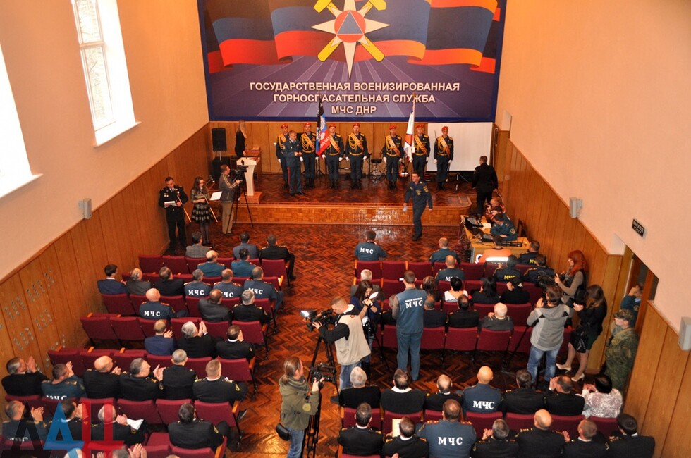 Донецк, 1 ноя – корр. ДАН. Около 300 работников горноспасательных служб Донецкой Народной Республики сегодня в торжественной обстановке отметили свой профессиональный праздник. Мероприятие прошло в актовом зале департамента государственной военизированной горноспасательной службы МЧС ДНР в Донецке.