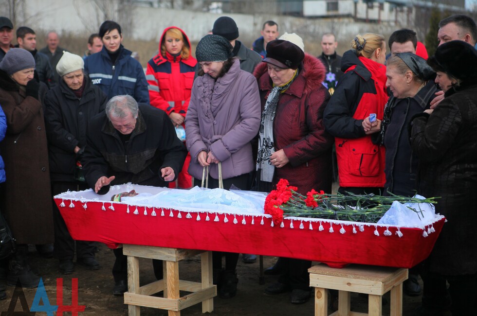 Траурная церемония прошла на Щегловском кладбище, которое примыкает к стволам шахты Засядько. Это одно из старейших кладбищ Донецка, на котором традиционно хоронят горняков. На надгробиях только мужские имена. Под кладбищем - угольные пласты.