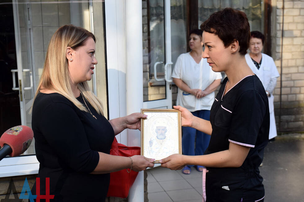 Открыли памятный знак представитель фонда Наталья Авилова и главный врач детской больницы Сергей Марков. Мероприятие также посетили и.о. министра молодежи, спорта и туризма ДНР Александр Громаков, и.о. заместителя главы Минздрава Республики Александр Левченко, заместитель командующего оперативным командованием Эдуард Басурин, общественный деятель, руководитель общественной организации «Надежда, вера и любовь» Надежда Лупач, родители детей, которые были спасены Доктором Лизой, а также медицинский персонал РДКБ.